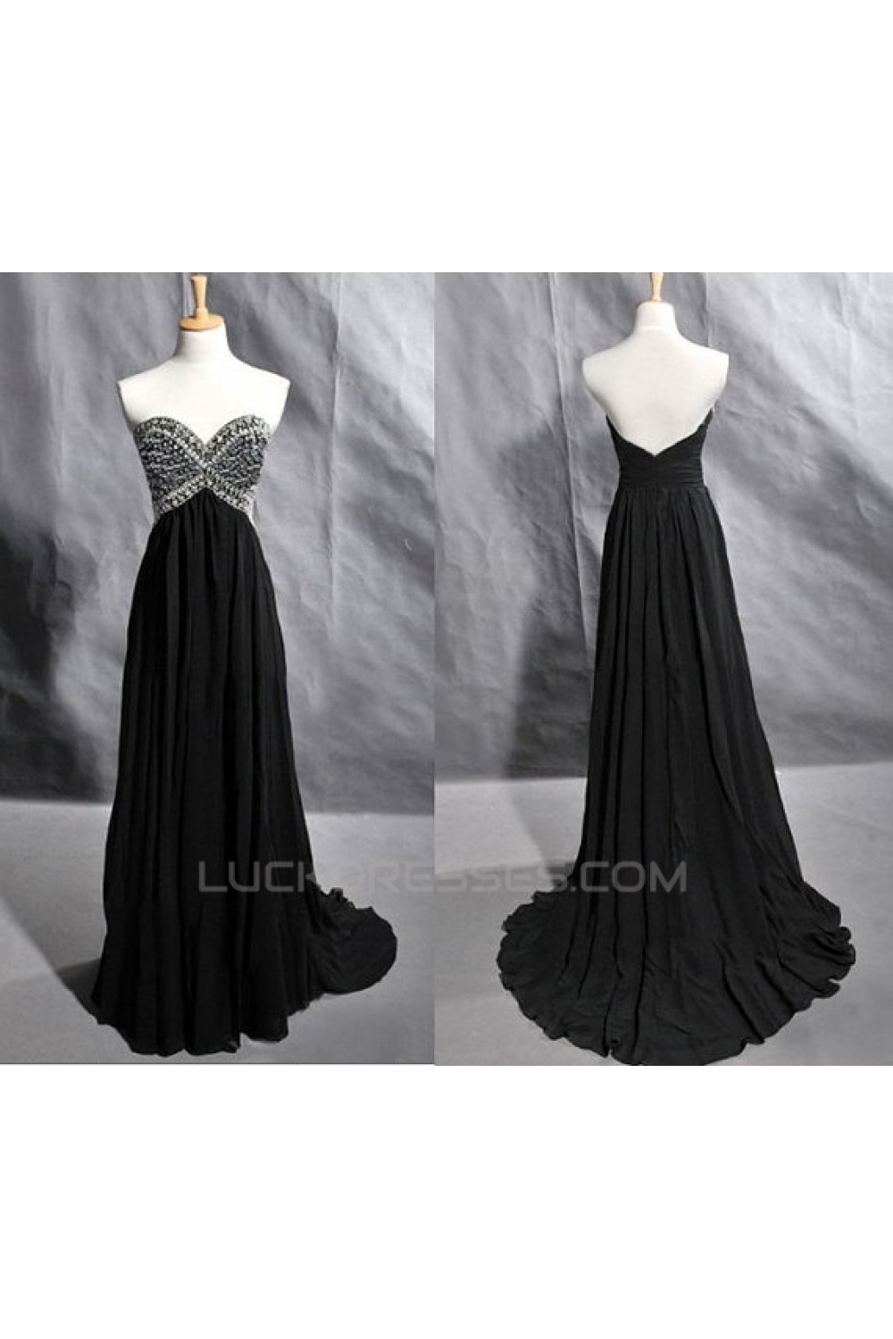 A-Line Sweetheart Beaded Long Black Chiffon Prom Evening Formal Dresses ED011418
