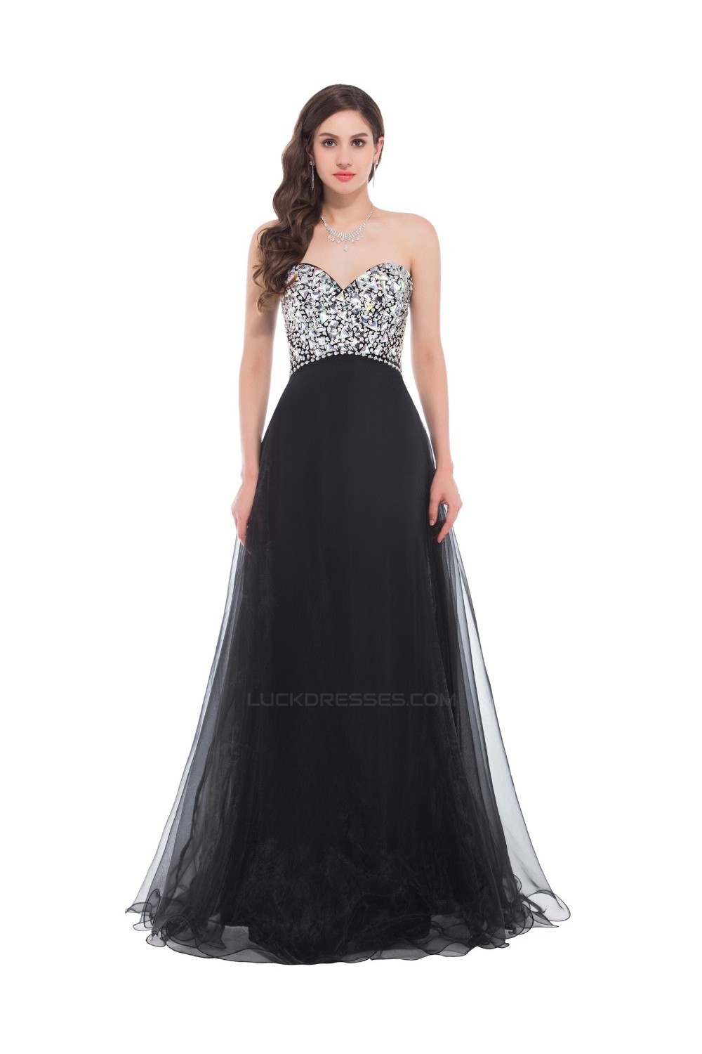 A-Line Sweetheart Beaded Long Black Prom Evening Formal Dresses ED011672