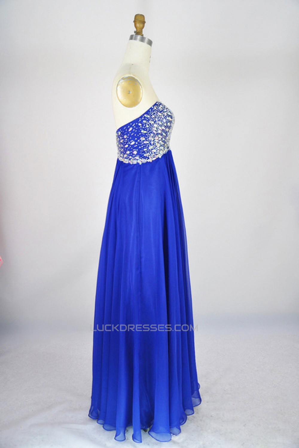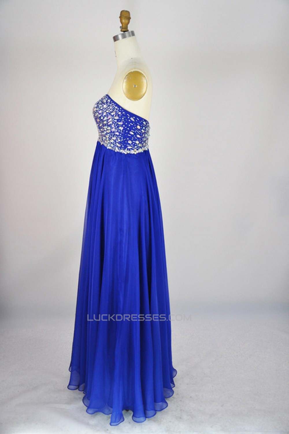 A-Line Sweetheart Beaded Long Blue Chiffon Prom Evening Formal Dresses ED011127