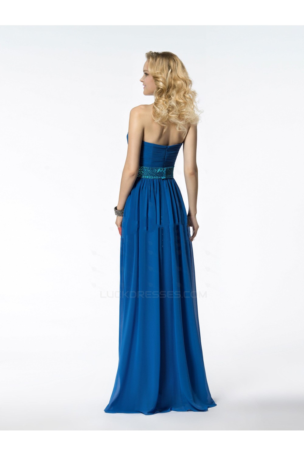 A-Line Sweetheart Beaded Long Blue Chiffon Prom Evening Formal Party Dresses ED010545