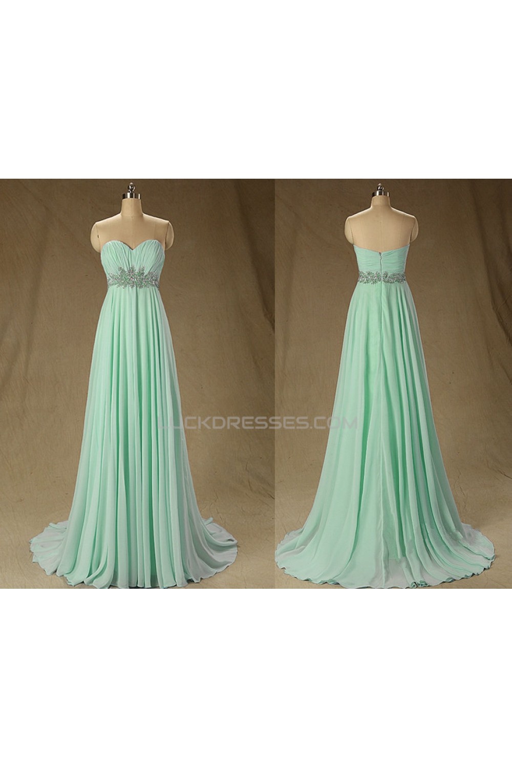 A-Line Sweetheart Beaded Long Mint Green Chiffon Prom Evening Formal Dresses ED011573