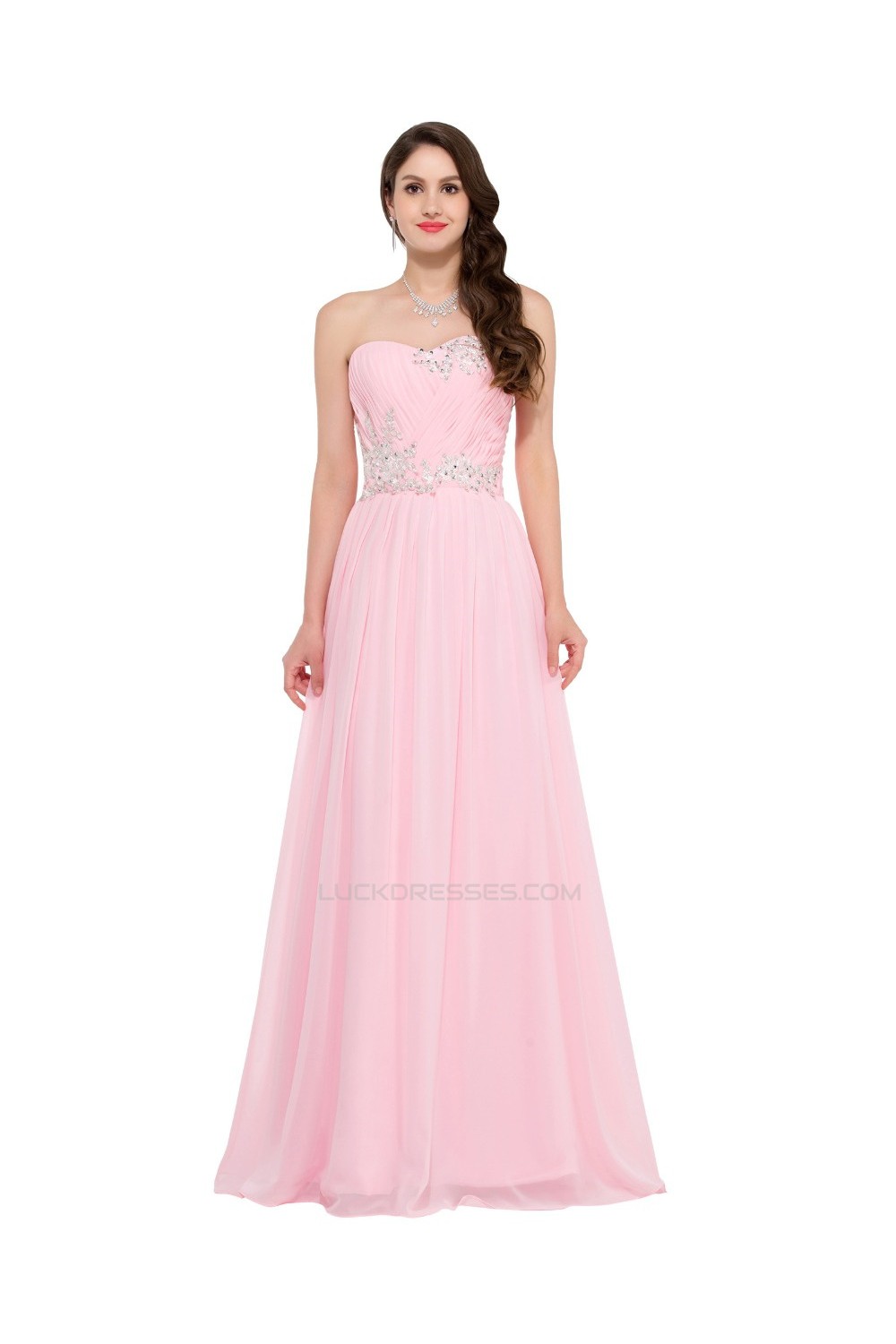 A-Line Sweetheart Beaded Long Pink Chiffon Prom Evening Formal Dresses ED011641