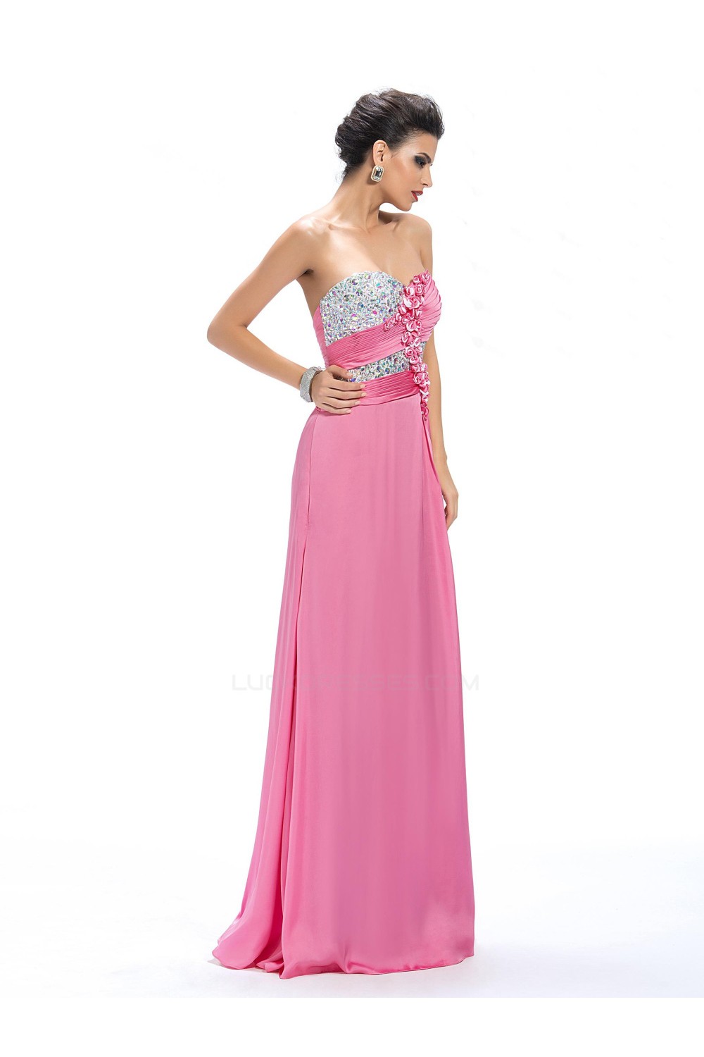 A-Line Sweetheart Beaded Long Pink Prom Evening Formal Party Dresses ED010659