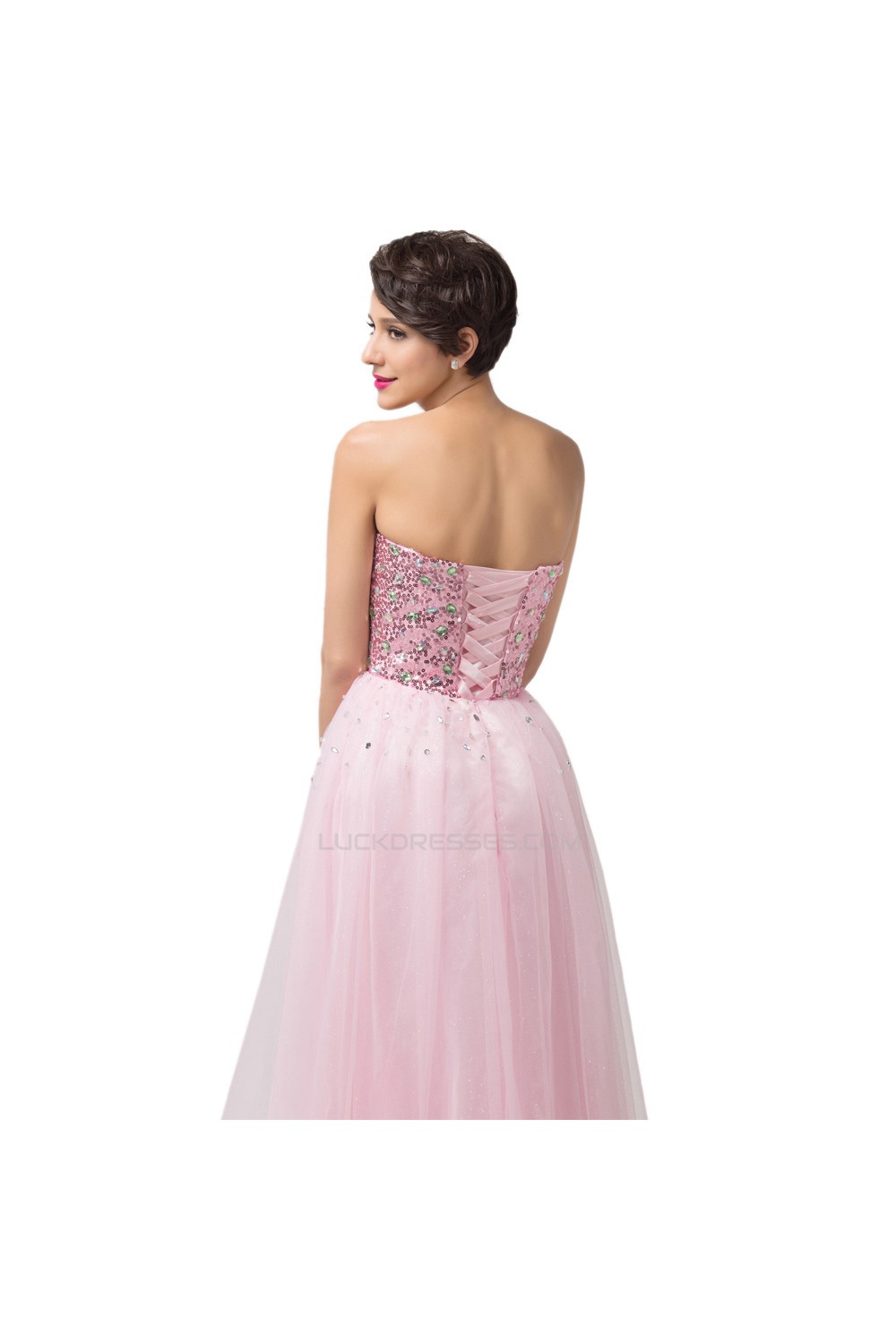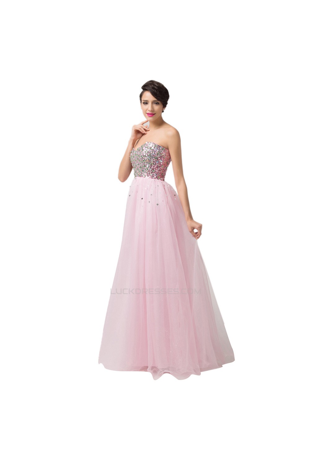 -60% A-Line Sweetheart Beaded Long Pink Tulle Prom Evening Formal Dresses ED011676