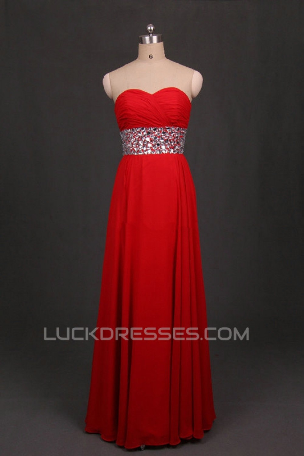 A-Line Sweetheart Beaded Long Red Chiffon Prom Evening Formal Dresses ED011097