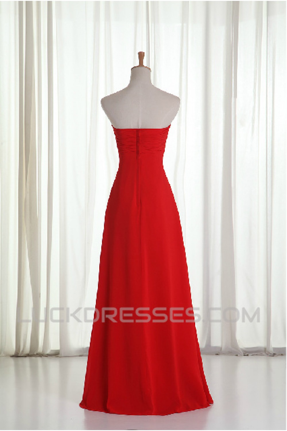A-Line Sweetheart Beaded Long Red Chiffon Prom Evening Formal Dresses ED011214