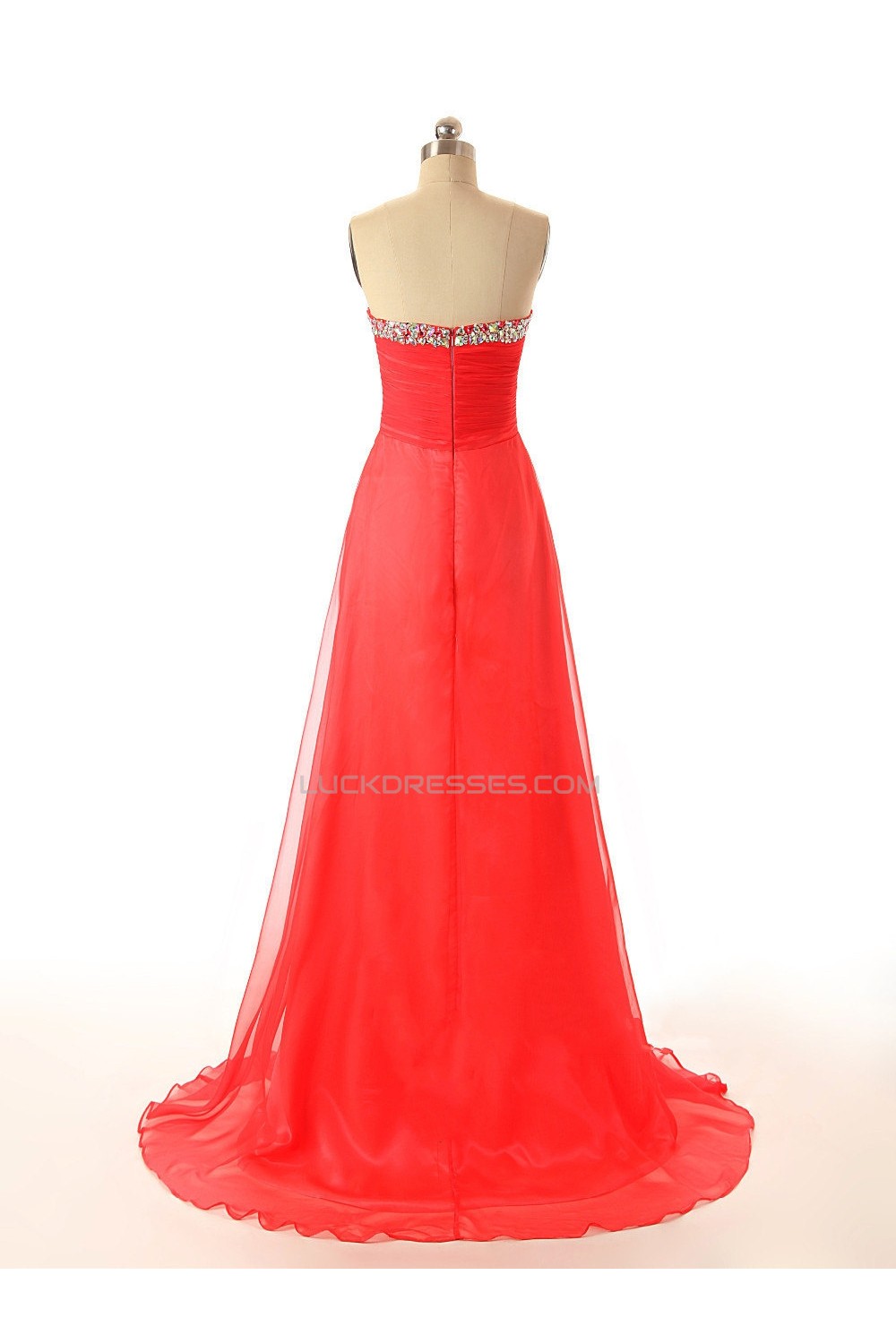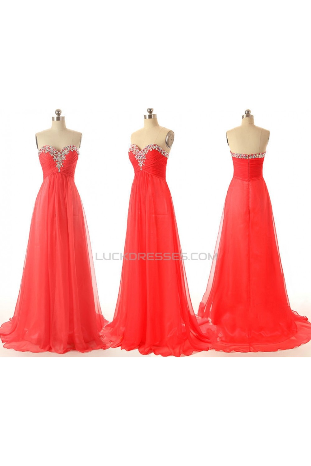 A-Line Sweetheart Beaded Long Red Chiffon Prom Evening Formal Dresses ED011546