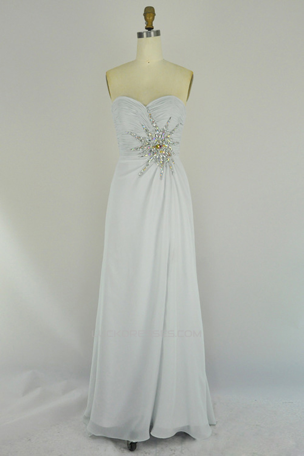 A-Line Sweetheart Beaded Long Yellow Chiffon Prom Evening Formal Dresses ED011169