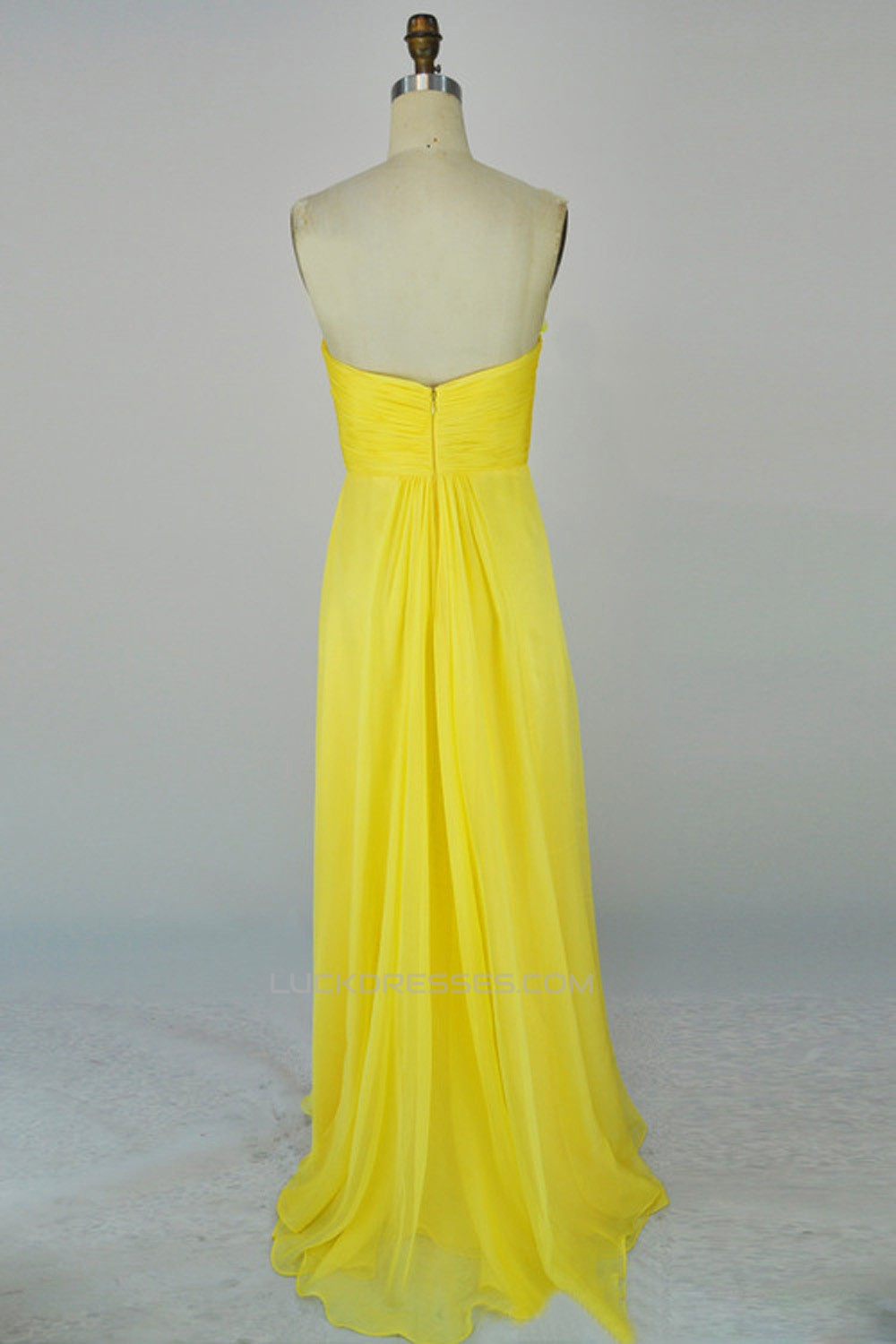 -60% A-Line Sweetheart Beaded Long Yellow Chiffon Prom Evening Formal Dresses ED011169