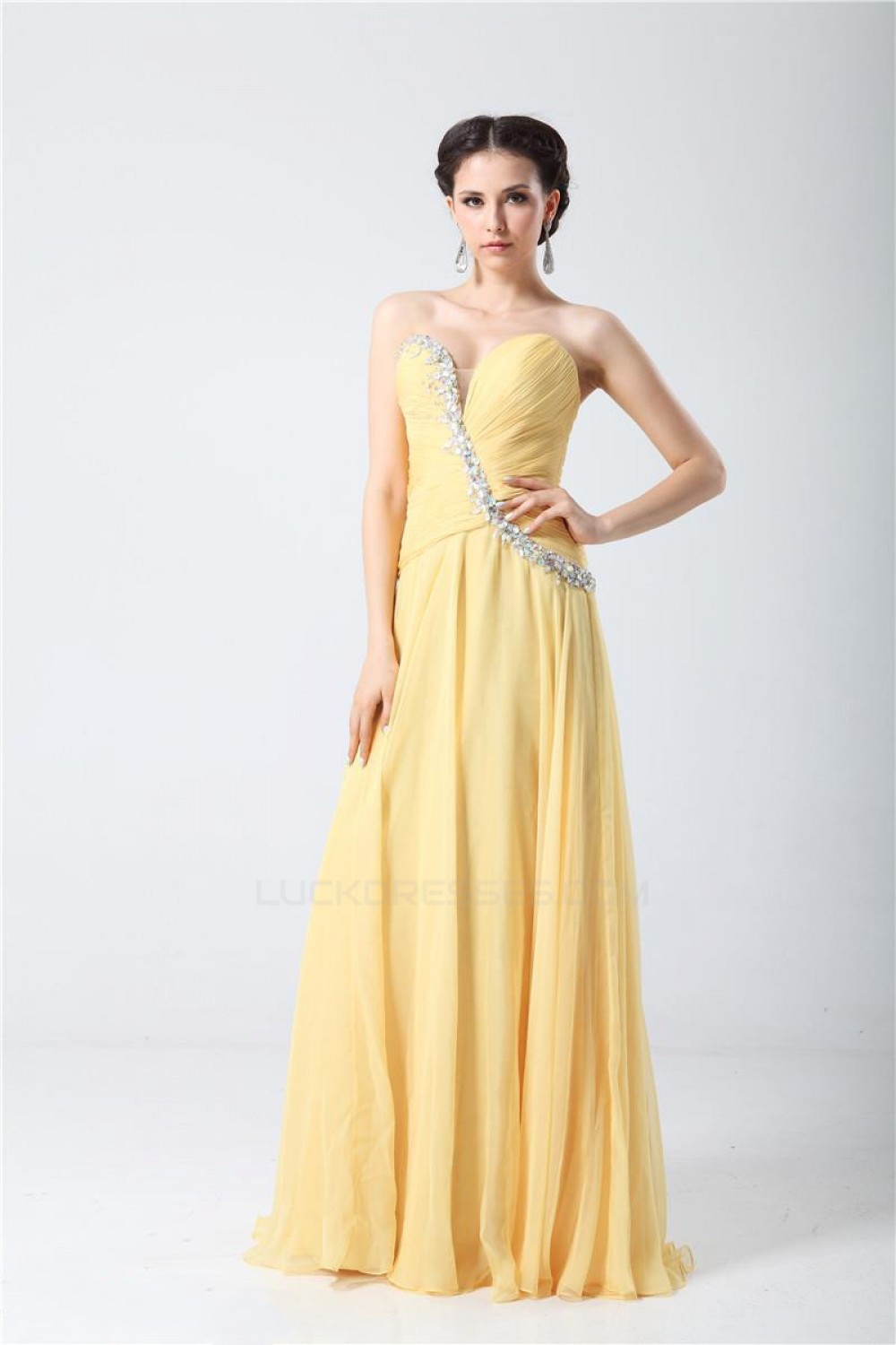 A-Line Sweetheart Beaded Long Yellow Chiffon Prom Evening Formal Party Dresses ED010706