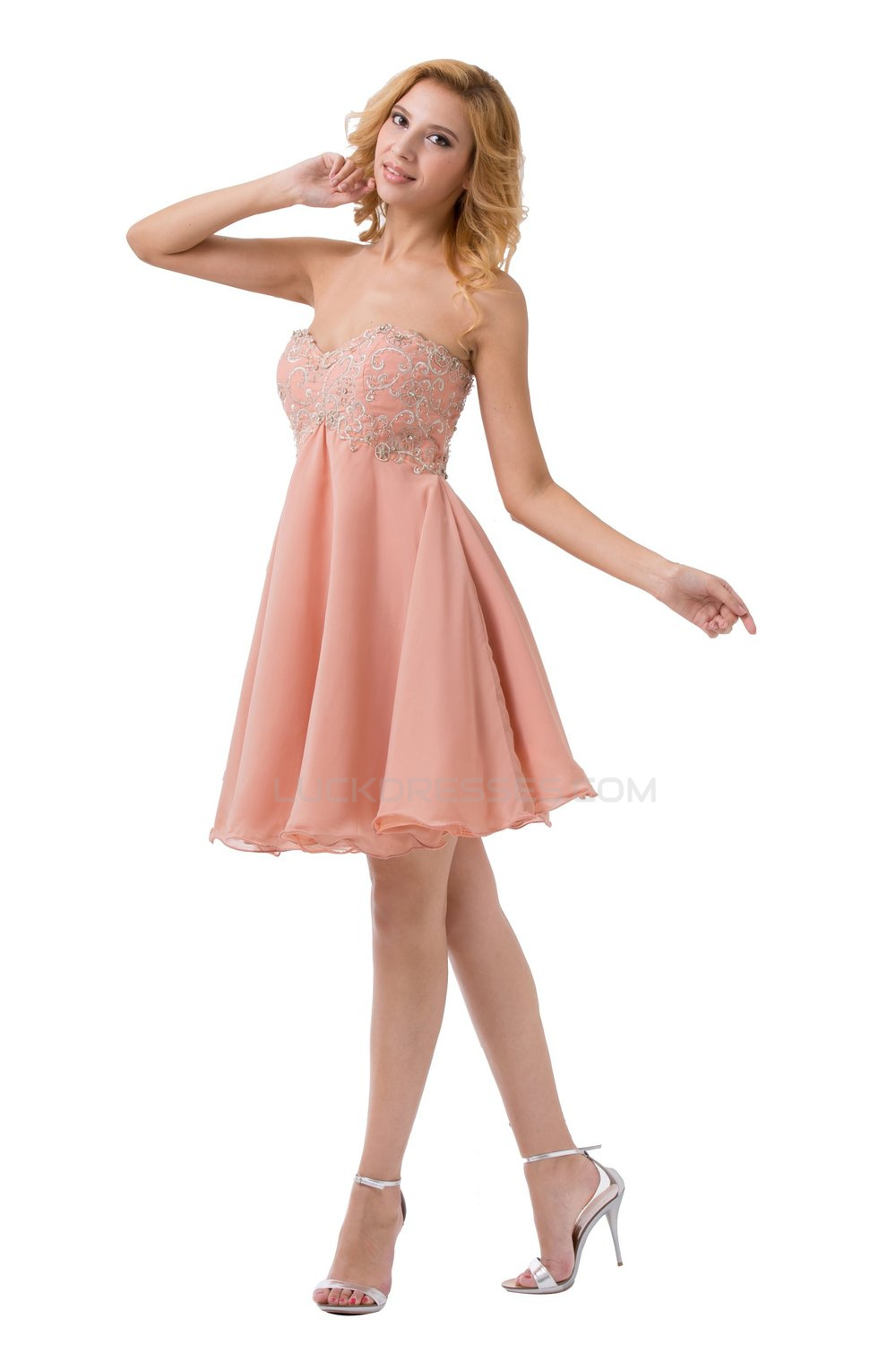 A-Line Sweetheart Beaded Short Chiffon Prom Evening Formal Party Dresses ED010491