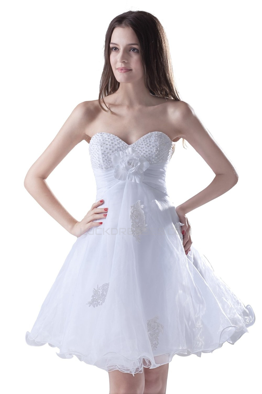A-Line Sweetheart Beaded Short White Chiffon Prom Evening Formal Party Dresses ED010299