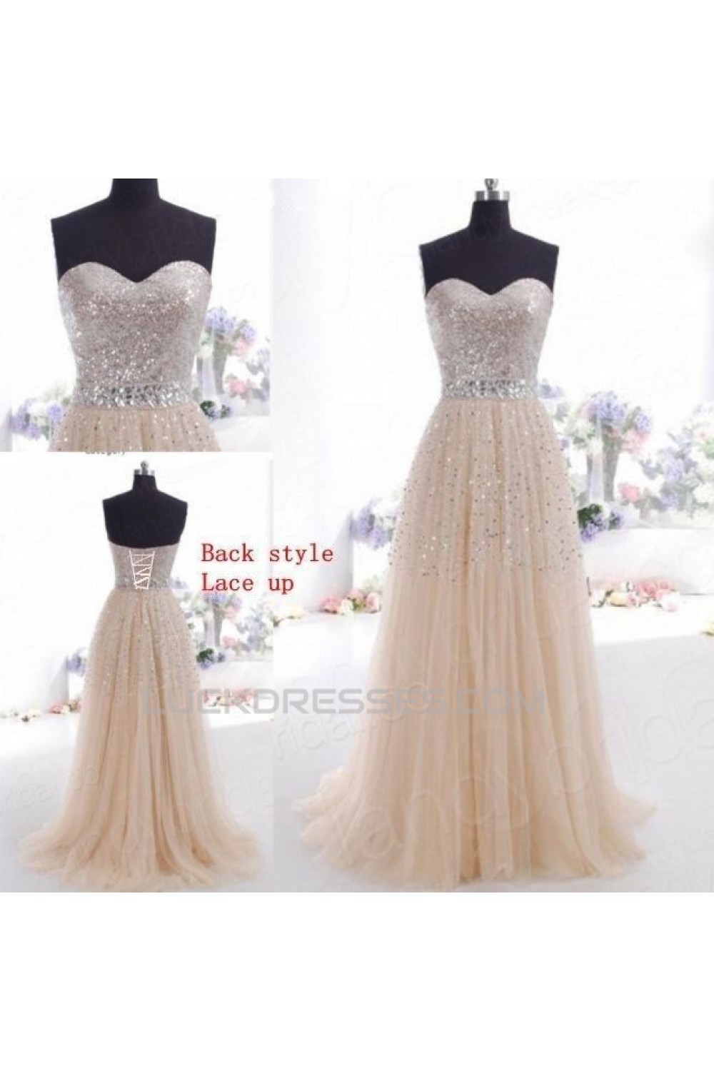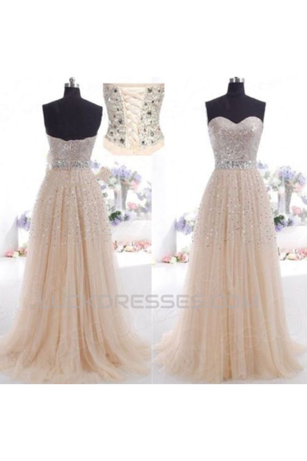 A-Line Sweetheart Beaded Tulle Long Prom Evening Formal Dresses ED011030
