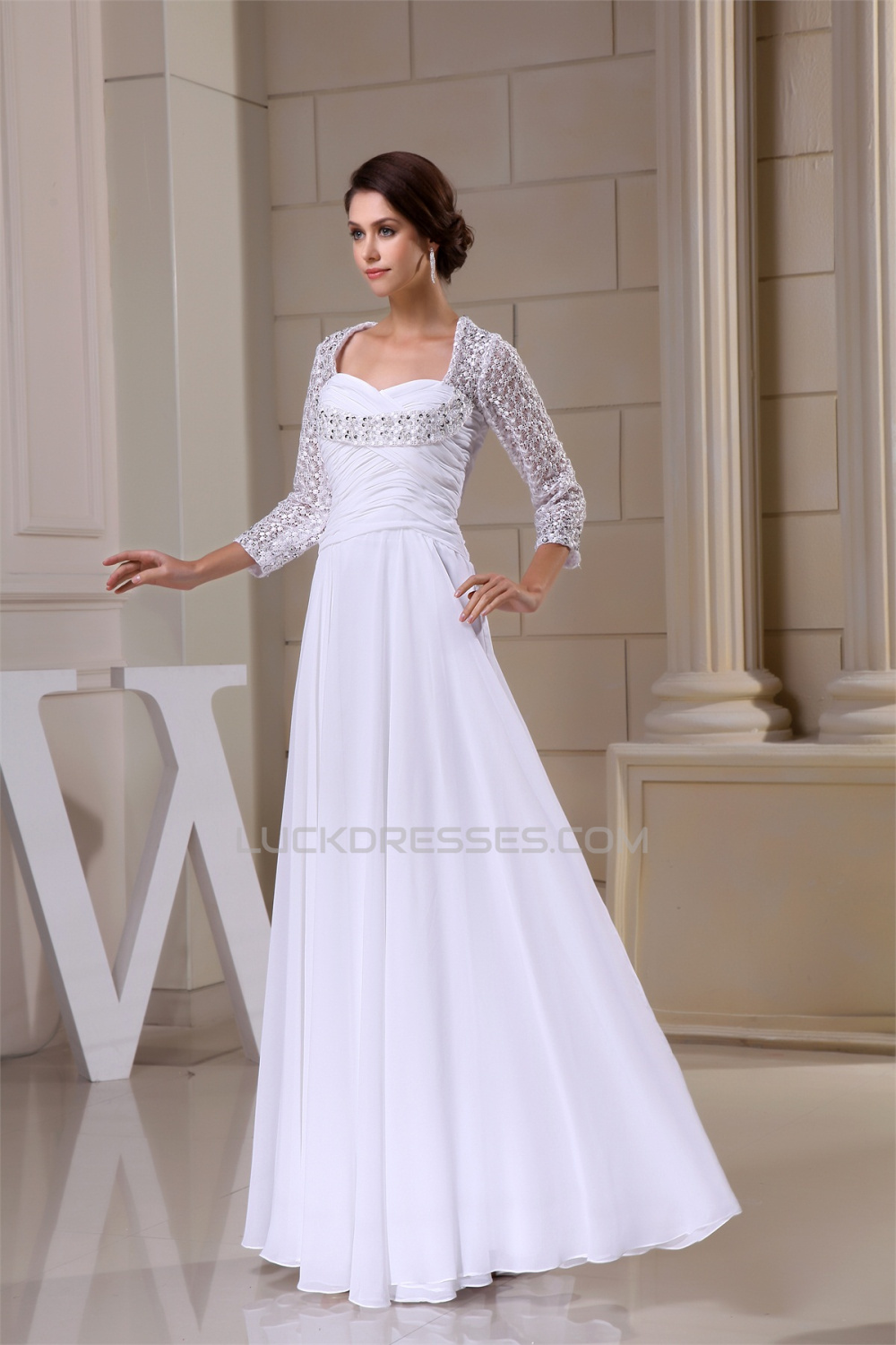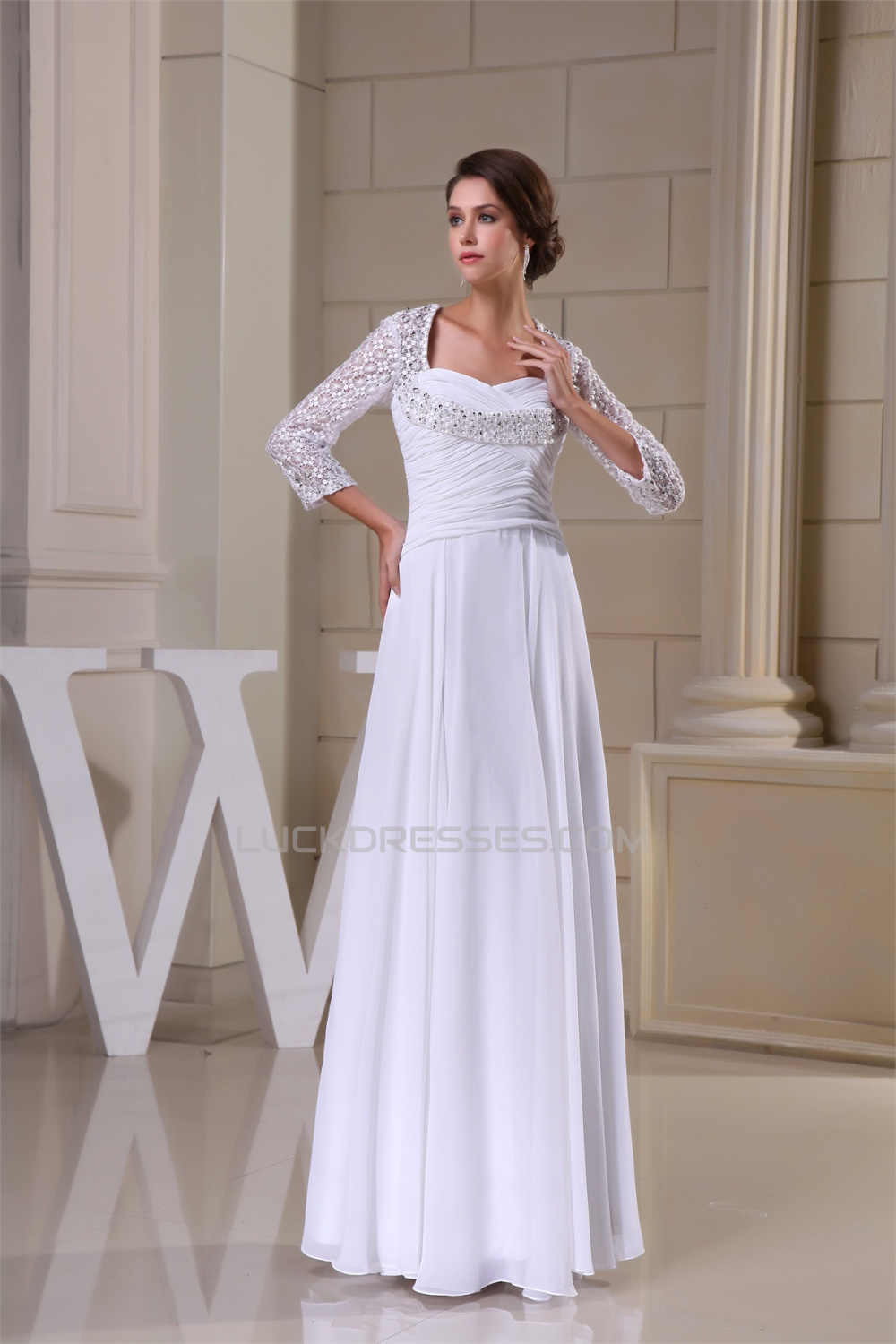 A-Line Sweetheart Chiffon Lace 3/4 Sleeve Most Beautiful Mother of the Bride Dresses 2040099