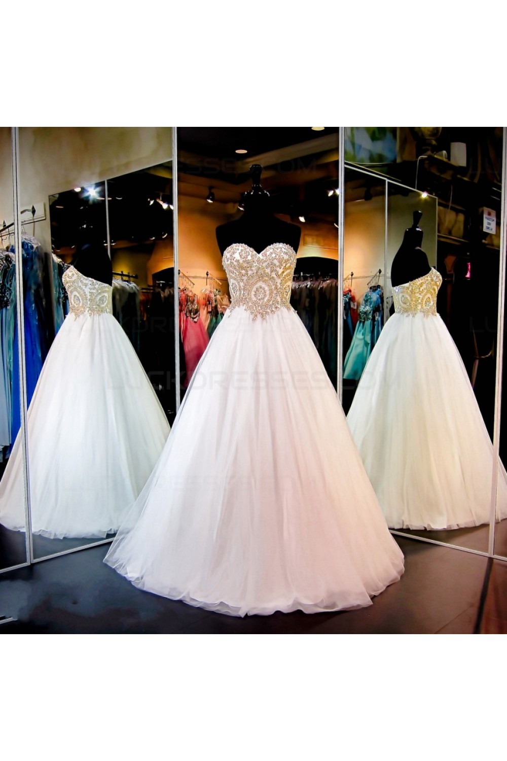 A-Line Sweetheart Gold Lace Appliques Wedding Dresses Bridal Gowns 3030217