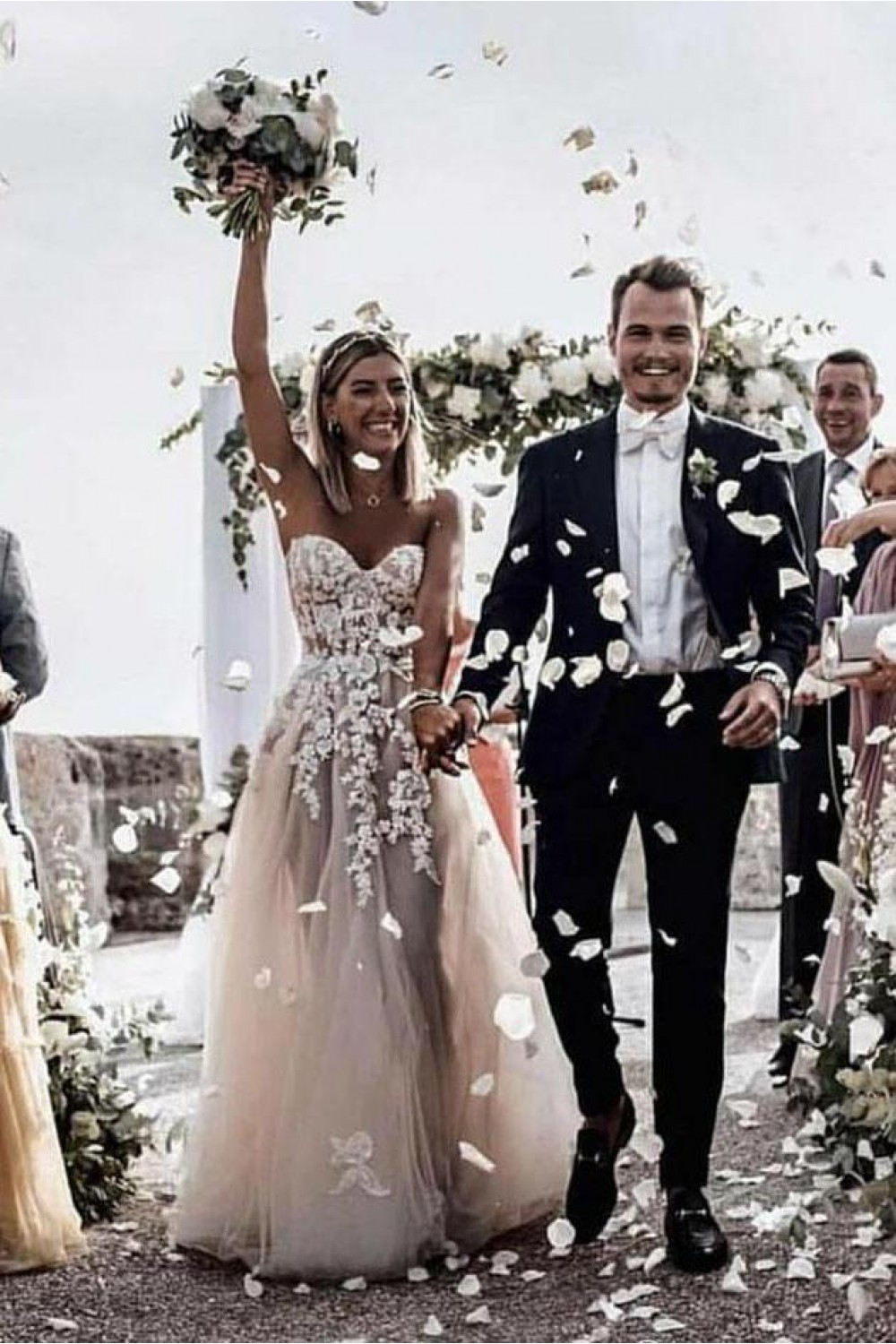A-Line Sweetheart Lace Long Wedding Dresses Bridal Gowns 903134