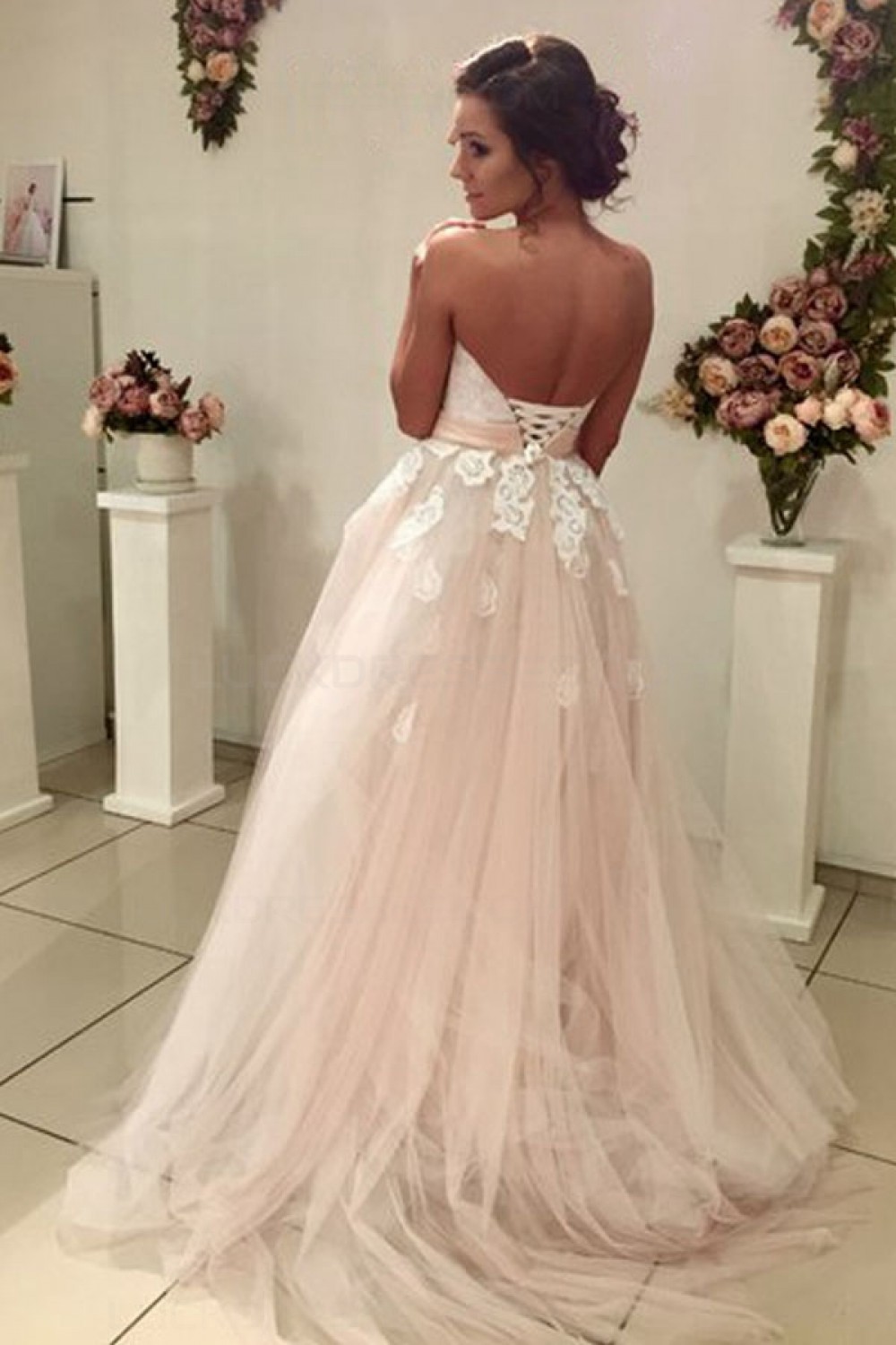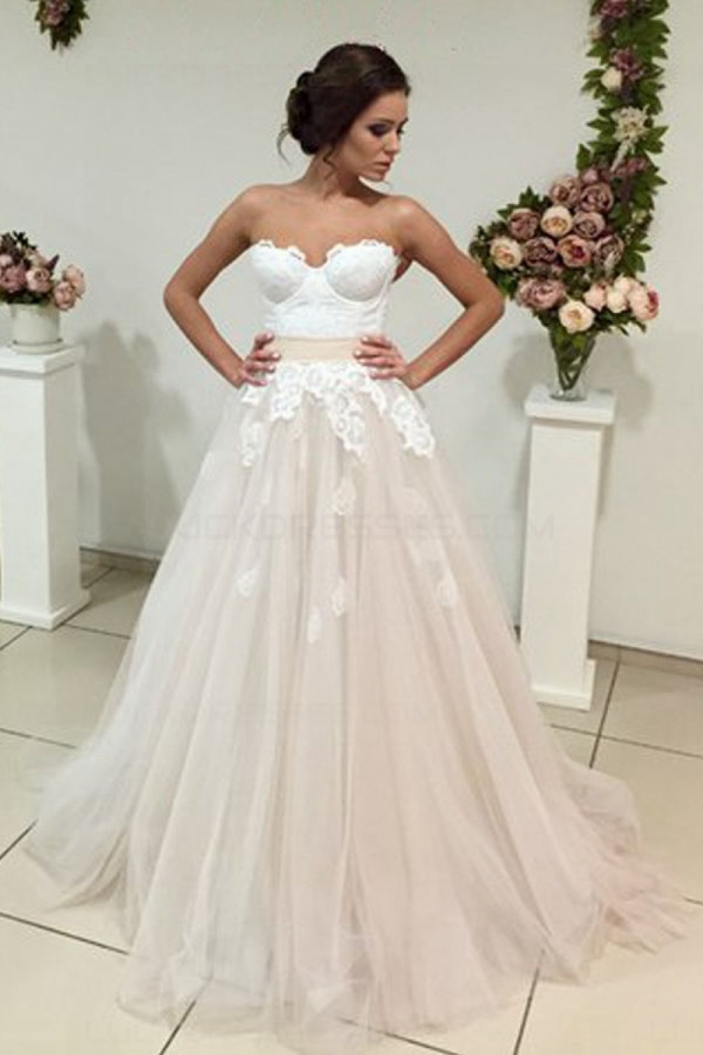 A-Line Sweetheart Lace Tulle Wedding Dresses Bridal Gowns 3030317