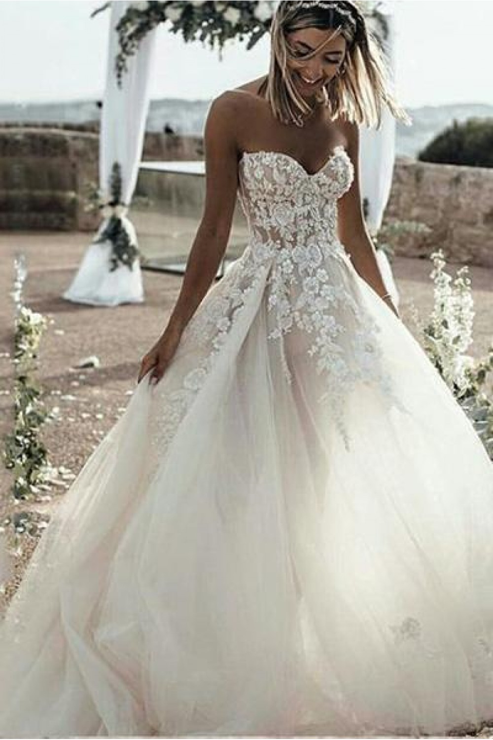 A-Line Sweetheart Lace and Tulle Wedding Dresses Bridal Gowns 903106