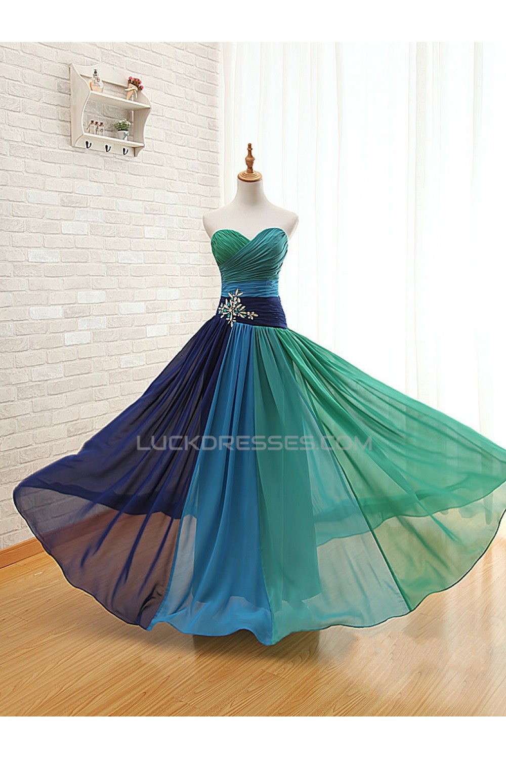 A-Line Sweetheart Long Chiffon Prom Evening Formal Dresses ED011564