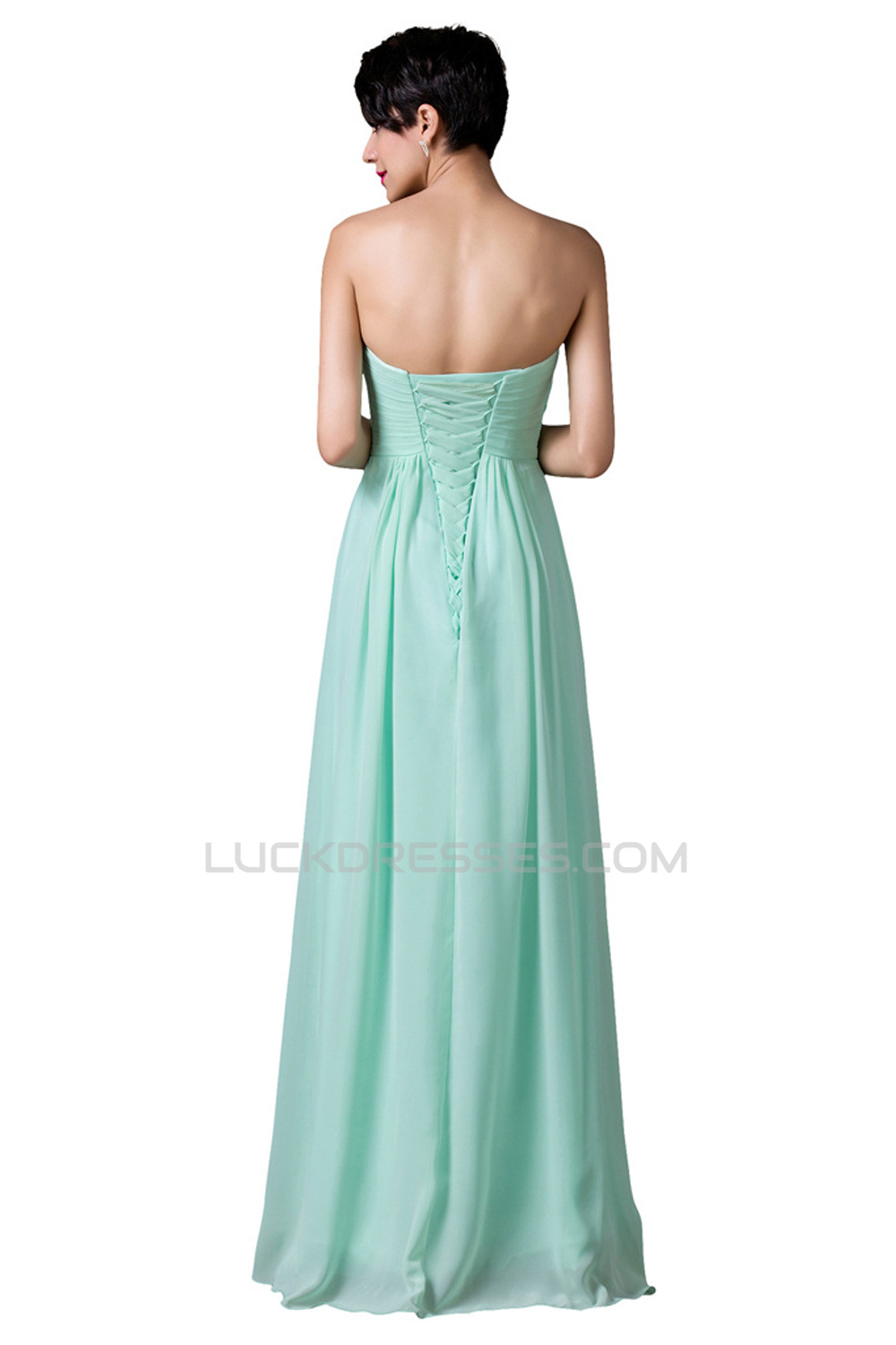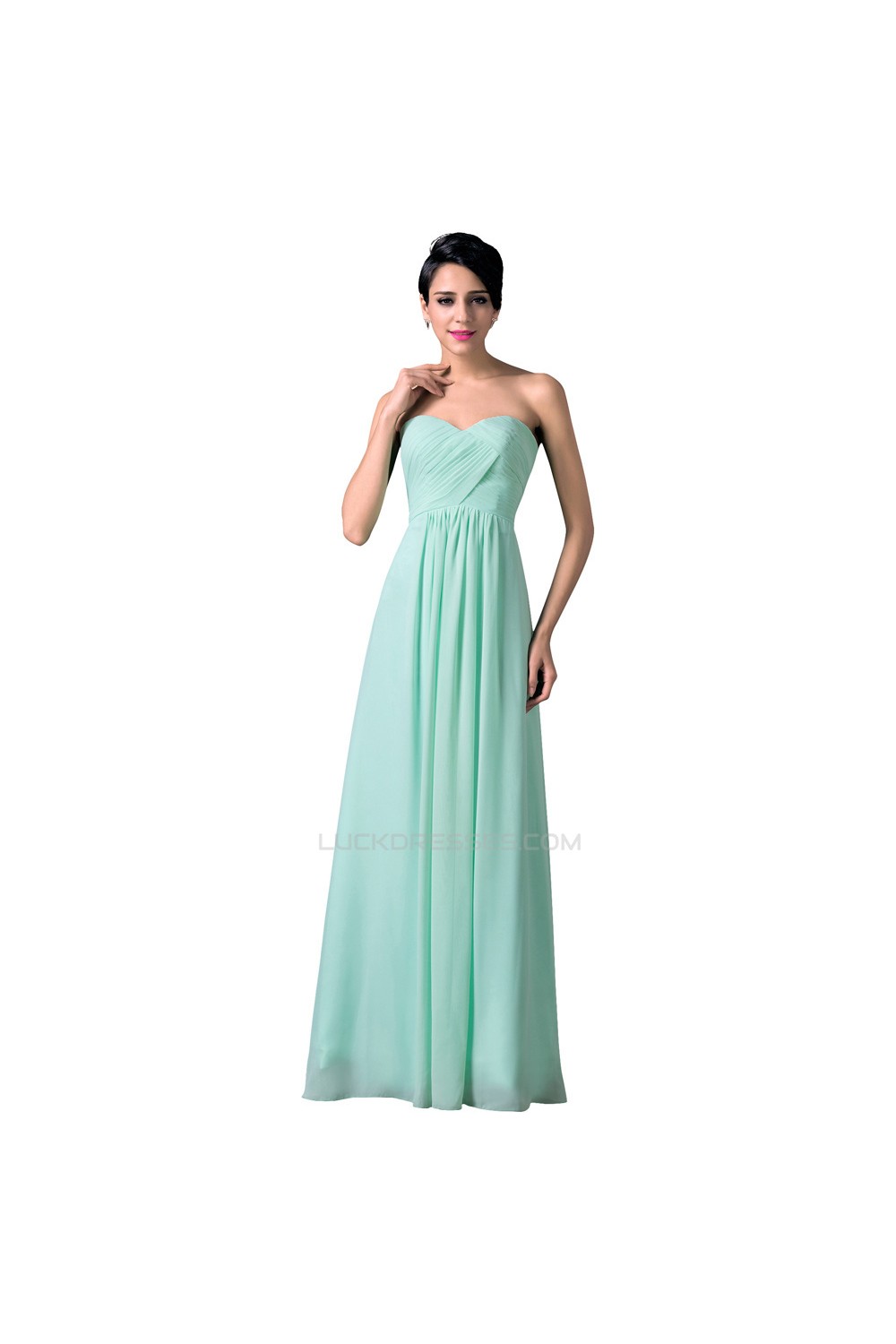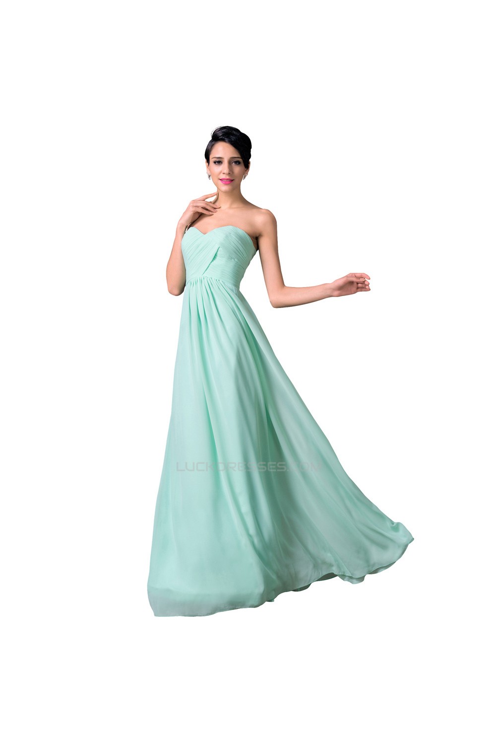 A-Line Sweetheart Long Mint Green Chiffon Prom Evening Bridesmaid Dresses ED011648