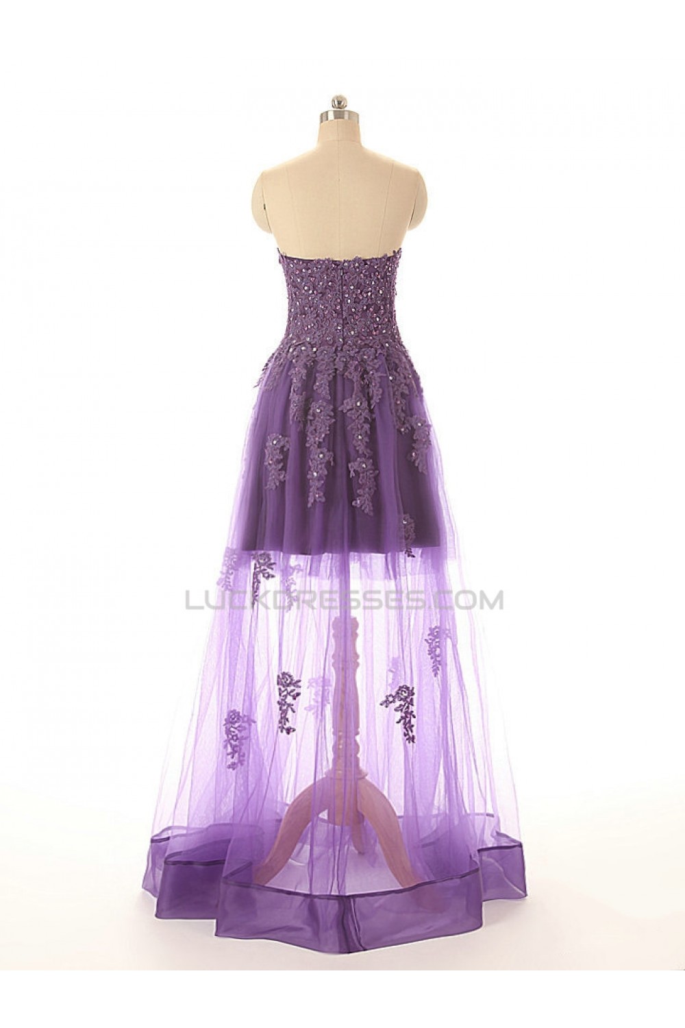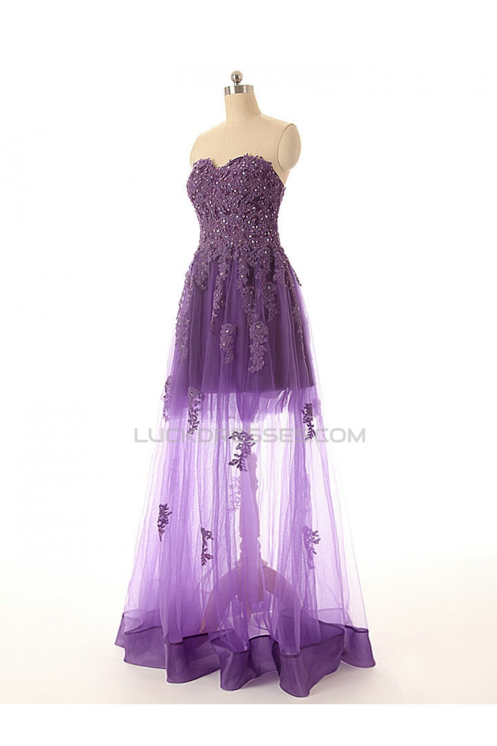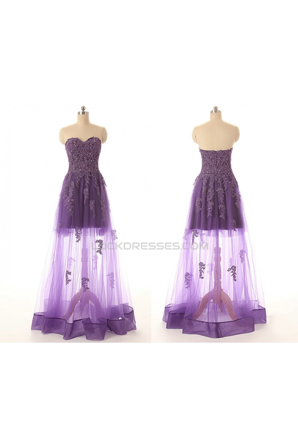 A-Line Sweetheart Long Purple Applique and Tulle Prom Evening Formal Dresses ED011551