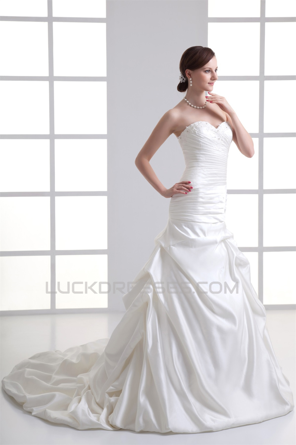 -50% A-Line Sweetheart Satin Sleeveless Wedding Dresses 2031096