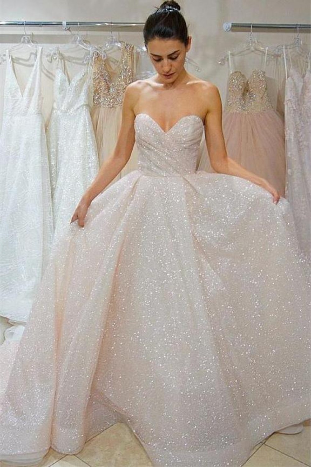 A-Line Sweetheart Sparkle Long Wedding Dresses Bridal Gowns 903044