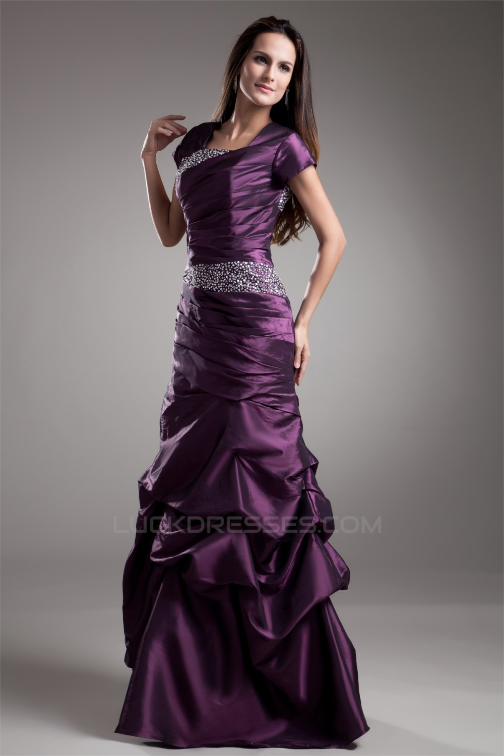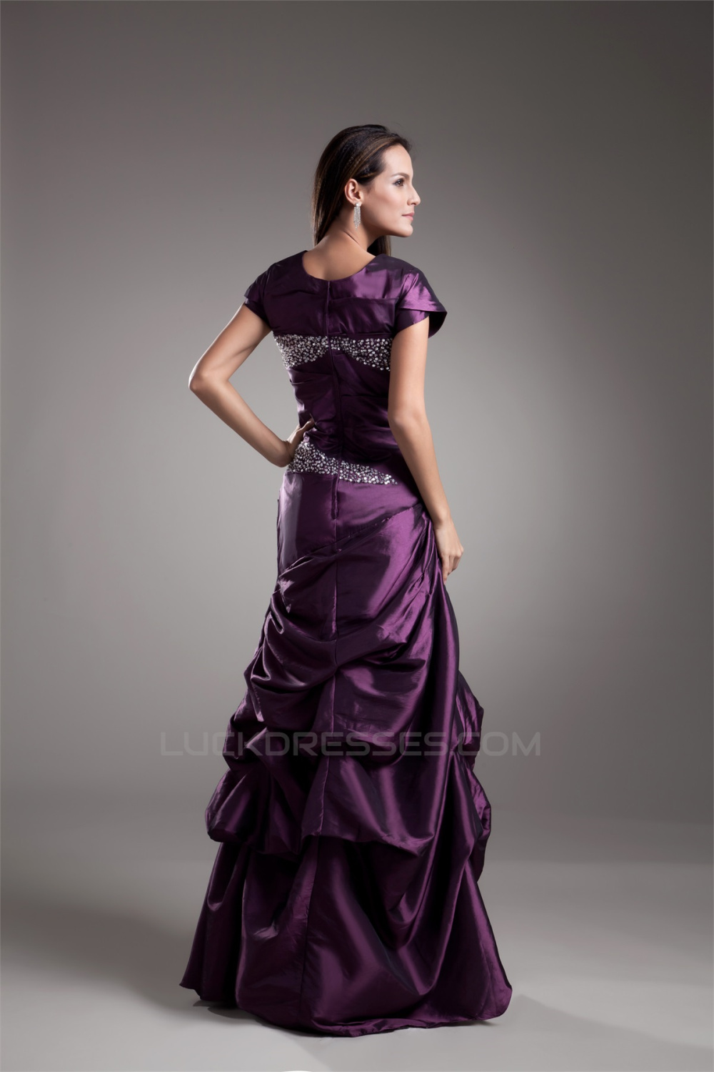 A-Line Taffeta Pleats Floor-Length Short Sleeve Mother of the Bride Dresses 02020639