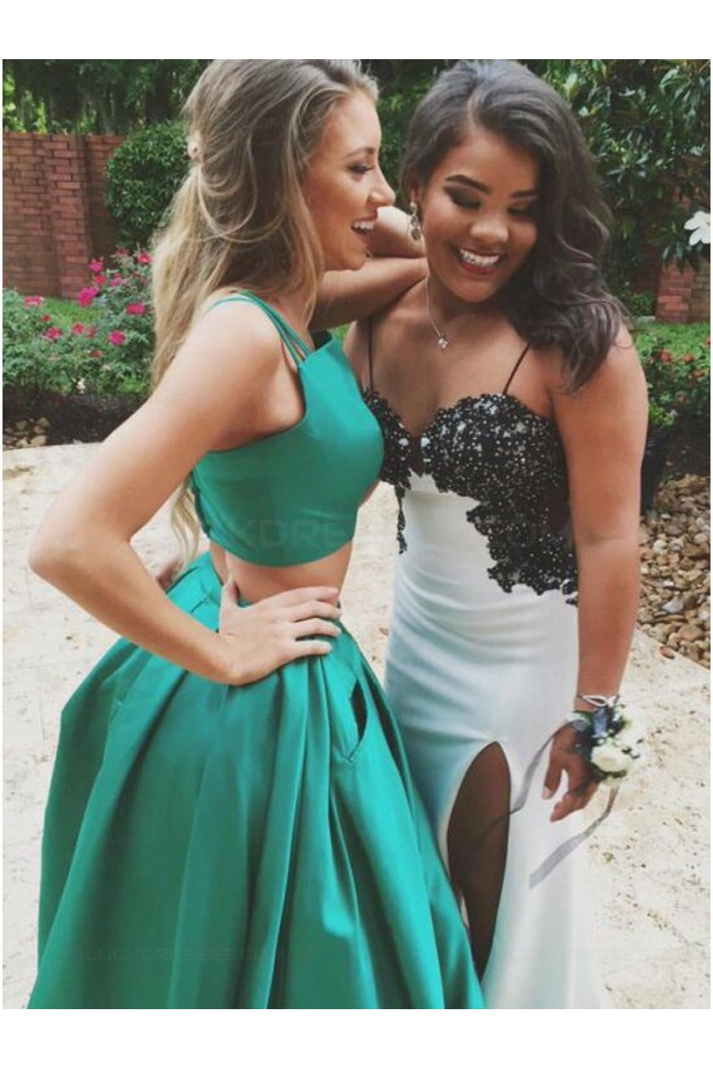 A-Line Two Pieces Green Prom Dresses Party Evening Gowns 3020295