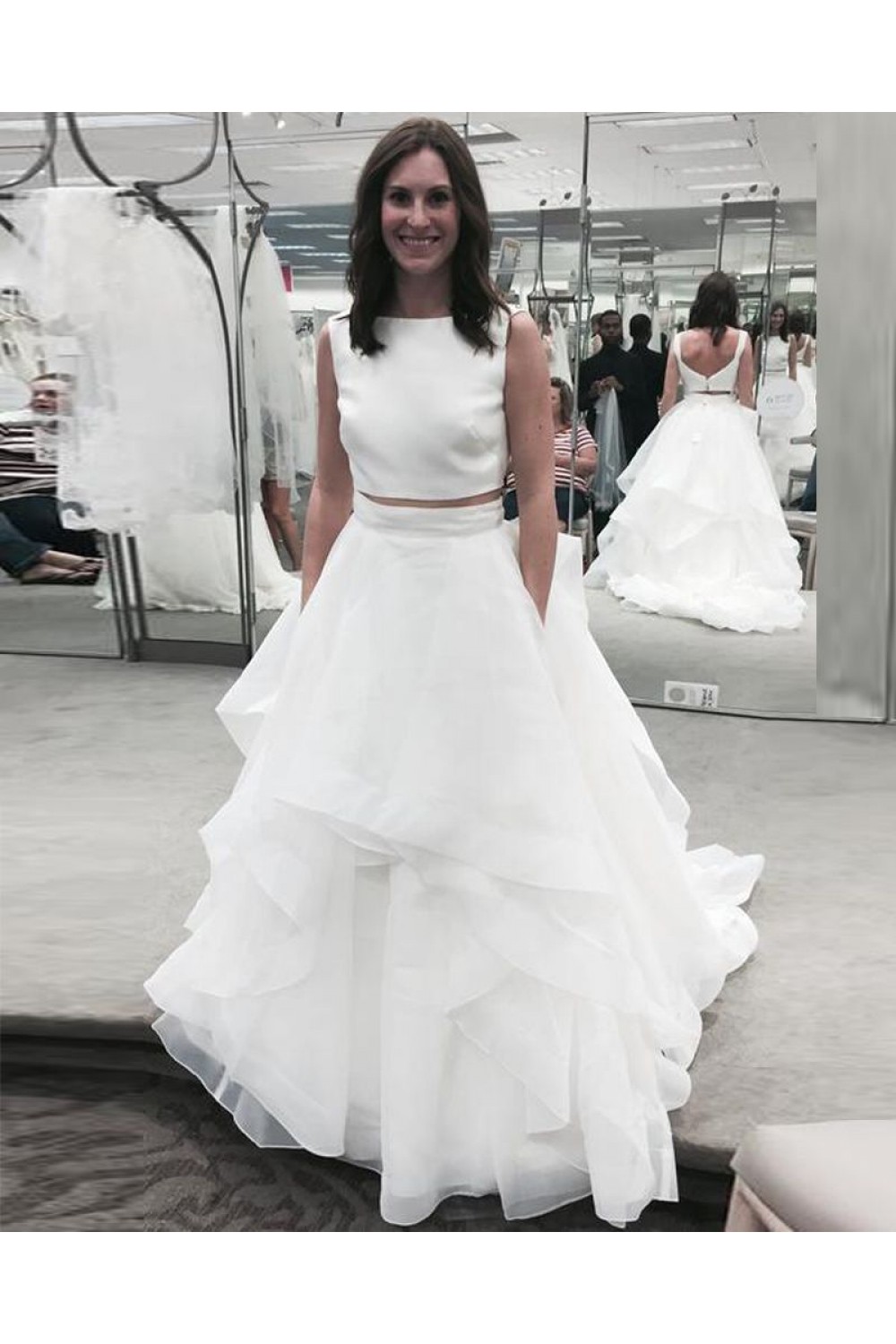 A-Line Two Pieces Long Wedding Dresses Bridal Gowns 903270