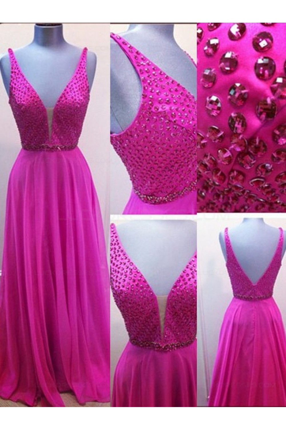 A-Line V-Neck Beaded Long Chiffon Prom Dresses Party Evening Gowns 3020313