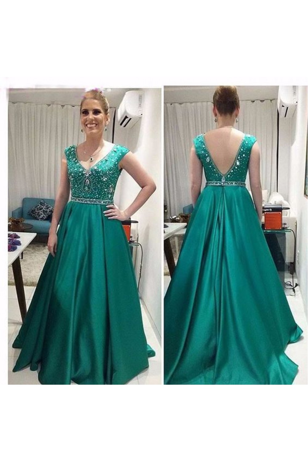 A-Line V-Neck Beaded Long Mother of The Bride Dresses 602110
