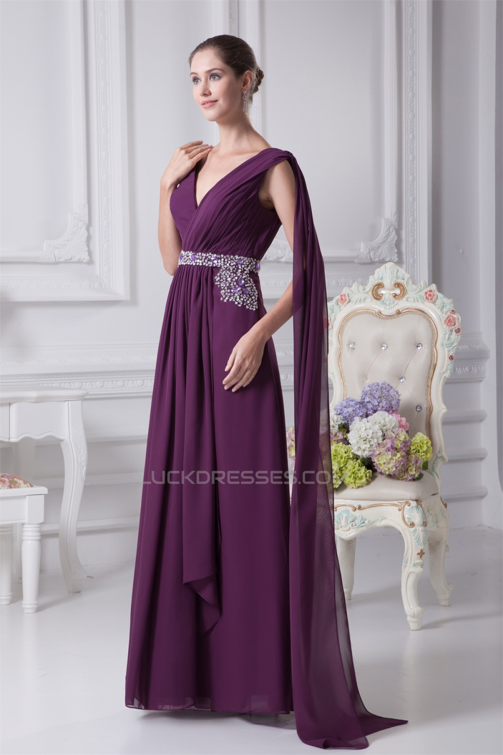 A-Line V-Neck Beading Long Purple Prom/Formal Evening Dresses 02020154
