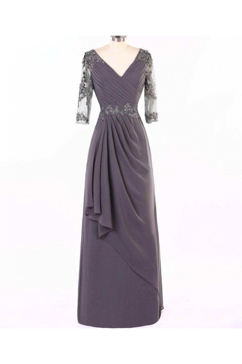 A-Line V Neck Chiffon and Lace Mother of the Bride Dresses 702135
