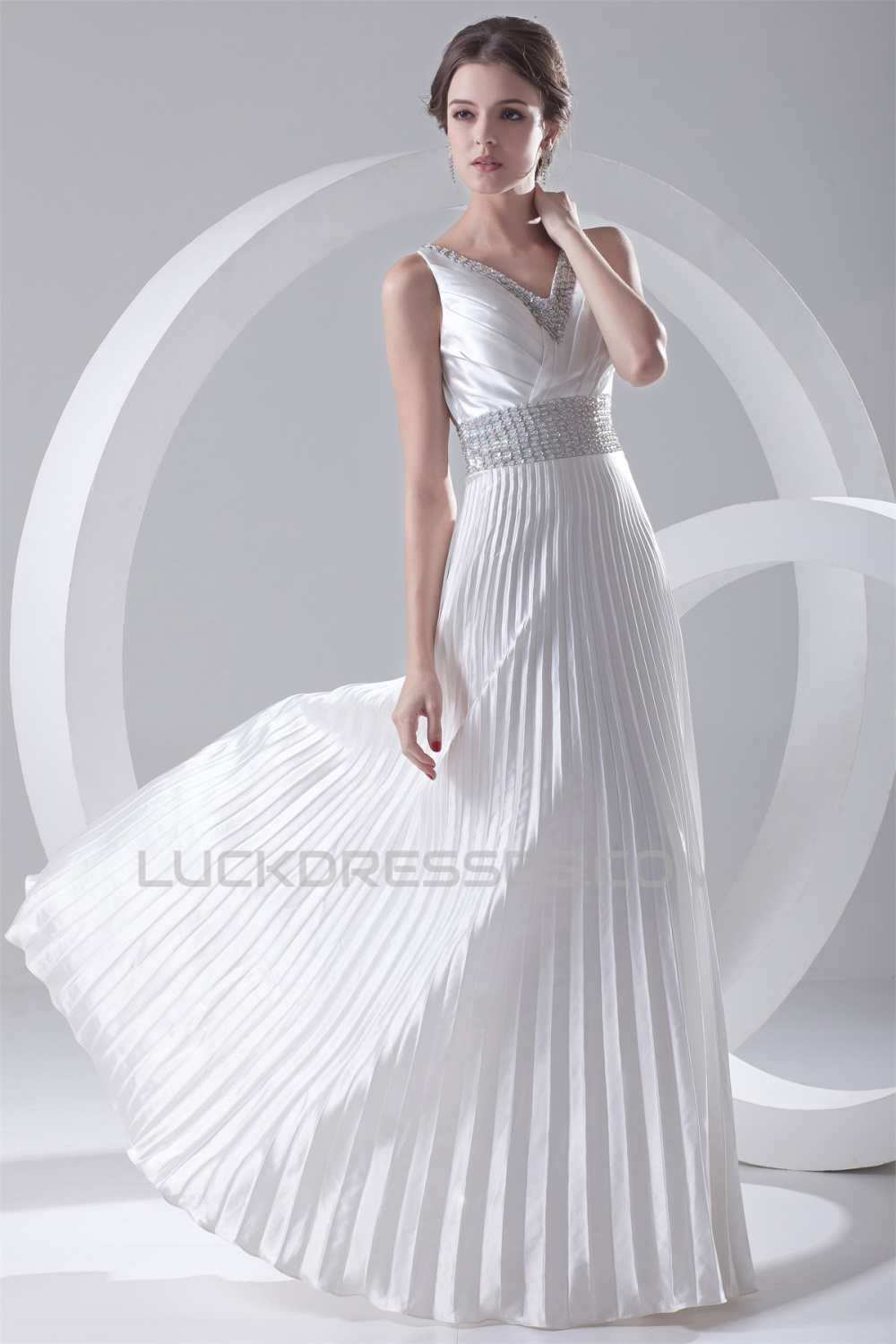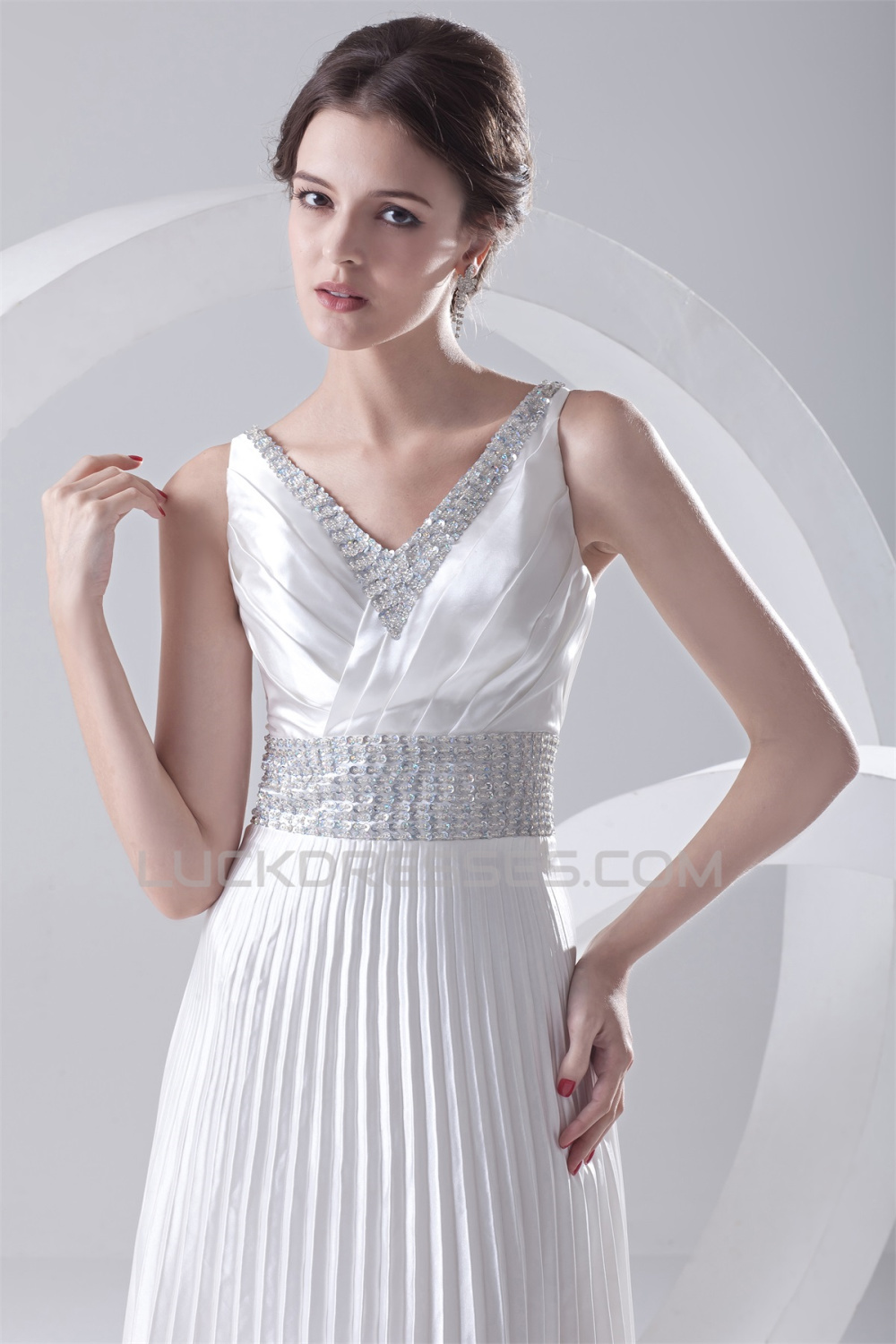 -50% A-Line V-Neck Elastic Woven Satin Floor-Length Beaded Sequin Wedding Dresses 2031099