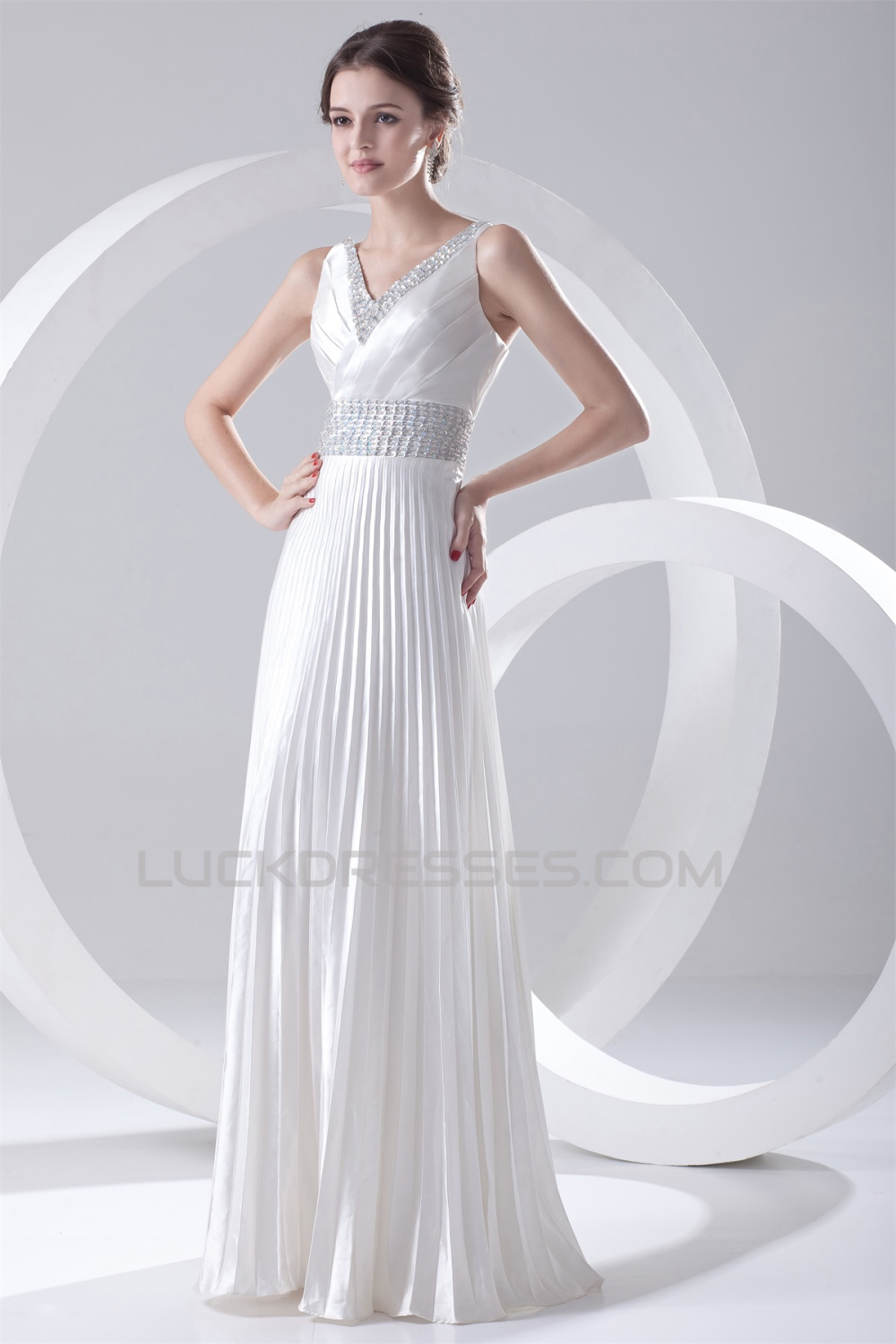 A-Line V-Neck Elastic Woven Satin Floor-Length Beaded Sequin Wedding Dresses 2031099