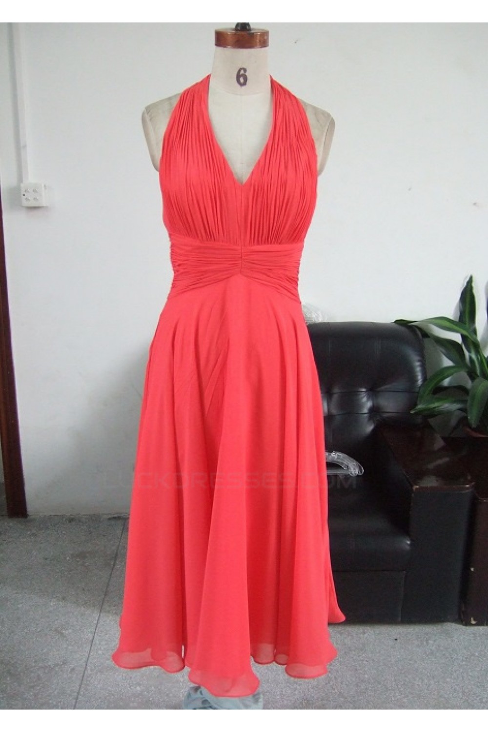 A-Line V-Neck Halter Short Chiffon Bridesmaid Dresses/Wedding Party Dresses BD010329