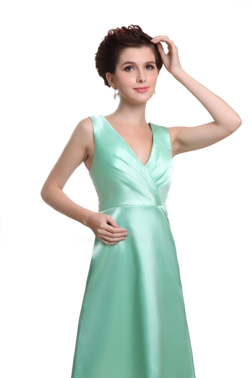 A-Line V-Neck Knee-Length Mint Green Satin Bridesmaid Dresses/Wedding Party Dresses BD010180