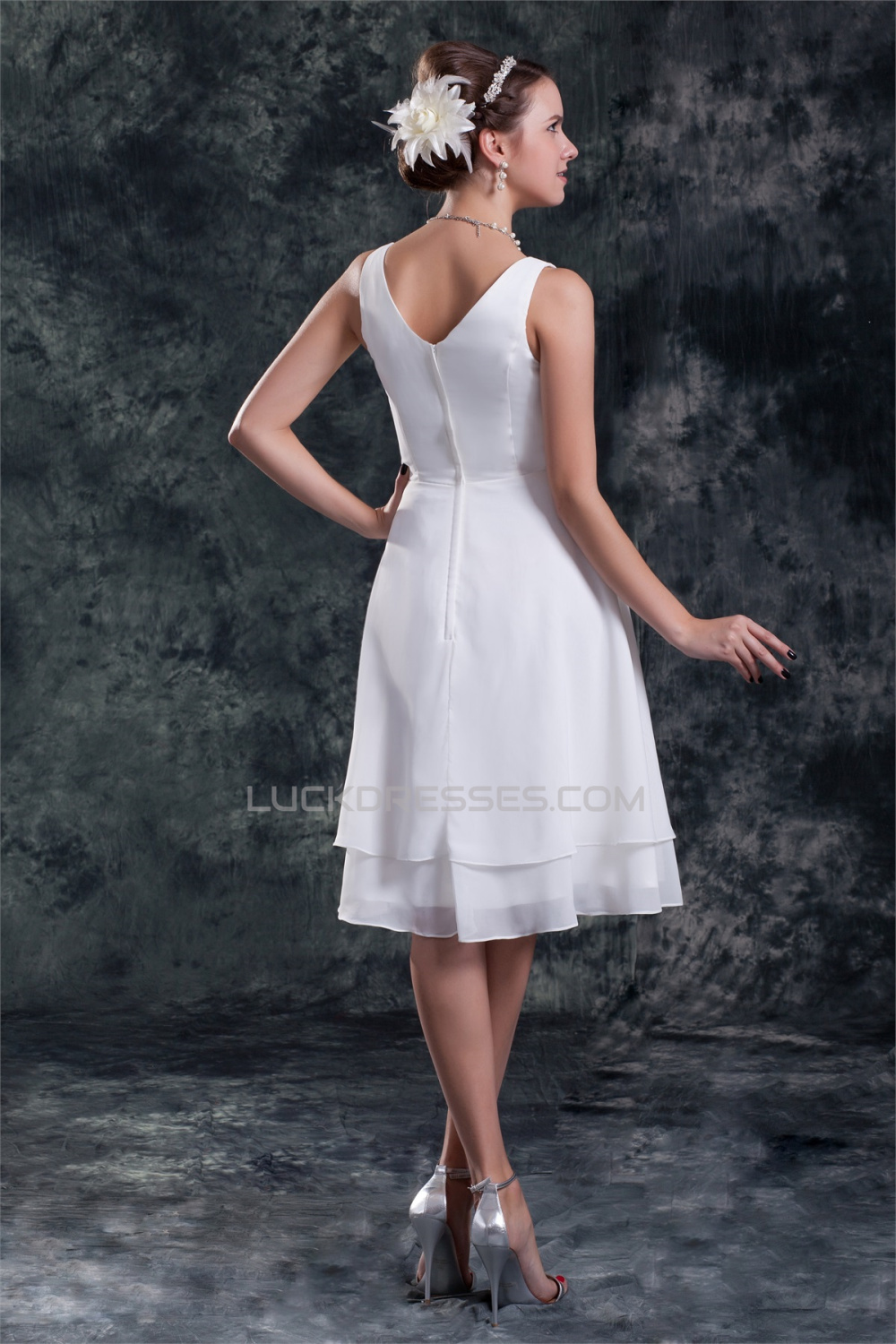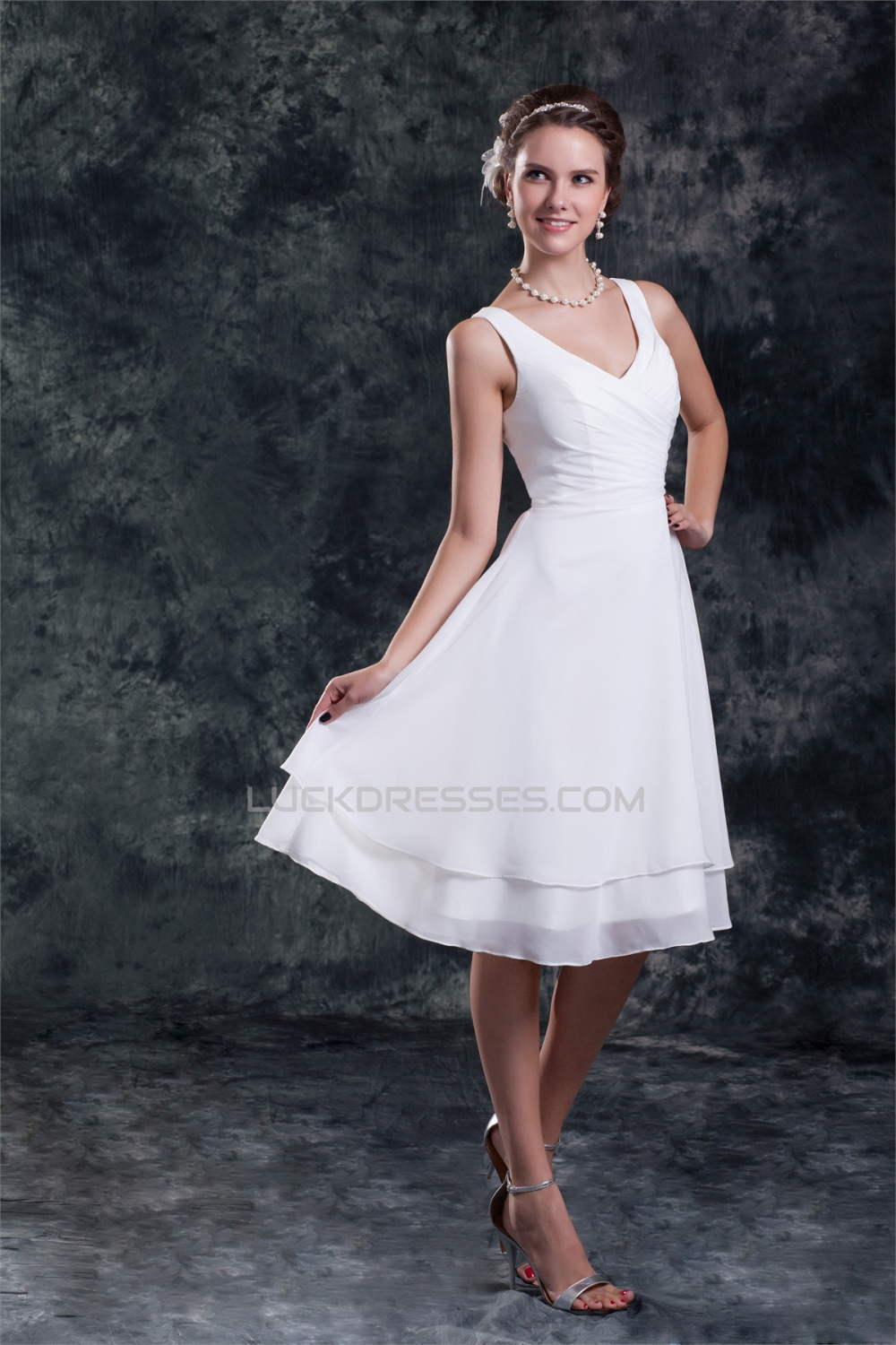A-Line V-Neck Knee-Length Ruffles Short White Bridesmaid Dresses 02010507