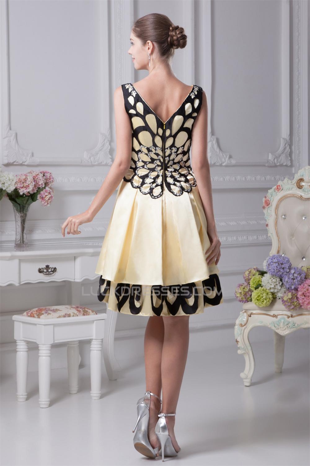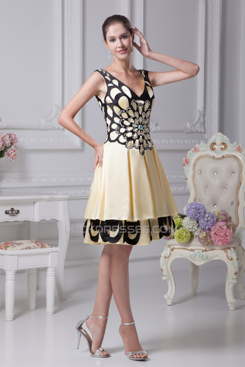 A-Line V-Neck Knee-Length Silk like Satin Sleeveless Mother of the Bride Dresses 2040102