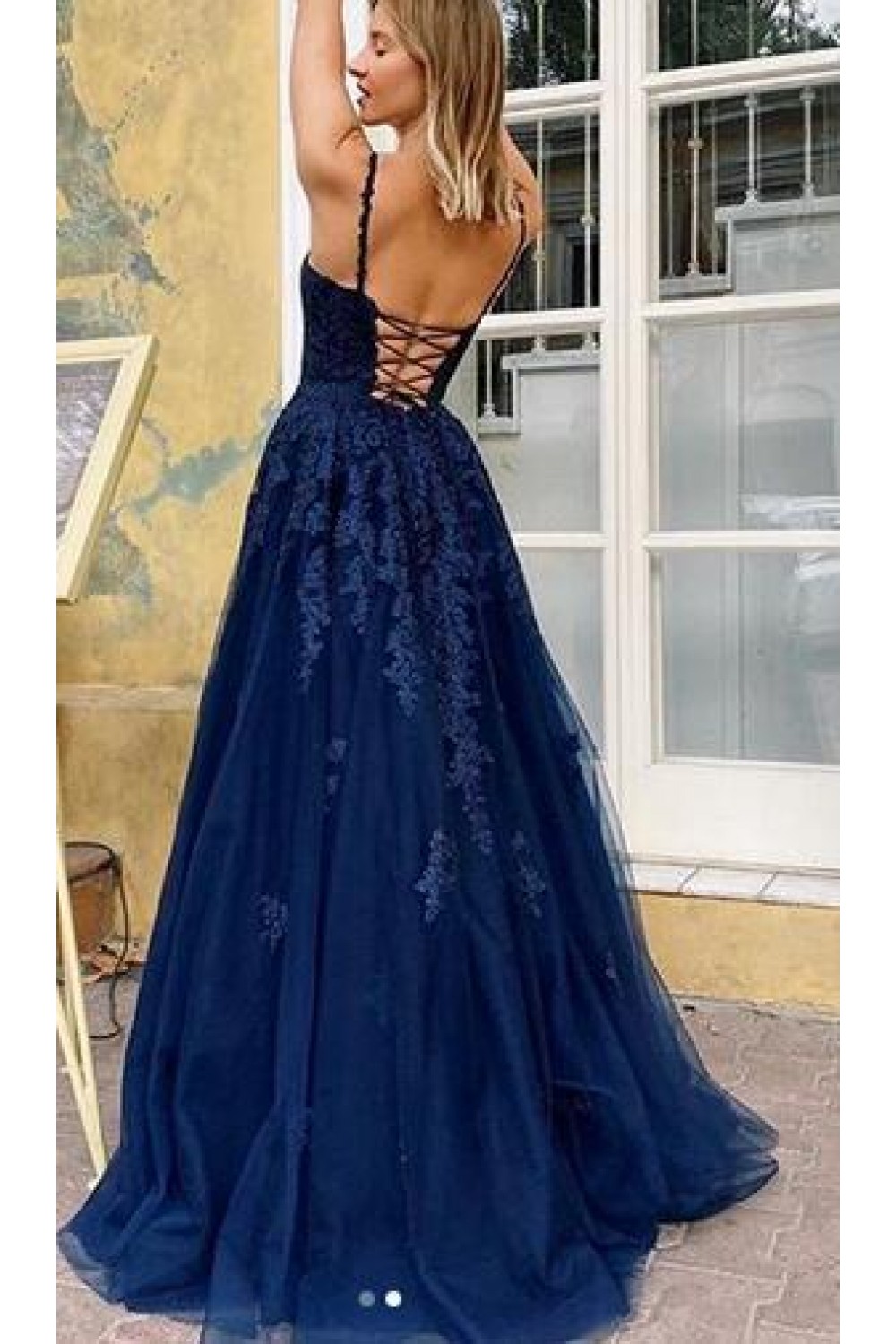 A-Line V-Neck Lace Appliques Long Prom Dress Formal Evening Dresses 601419