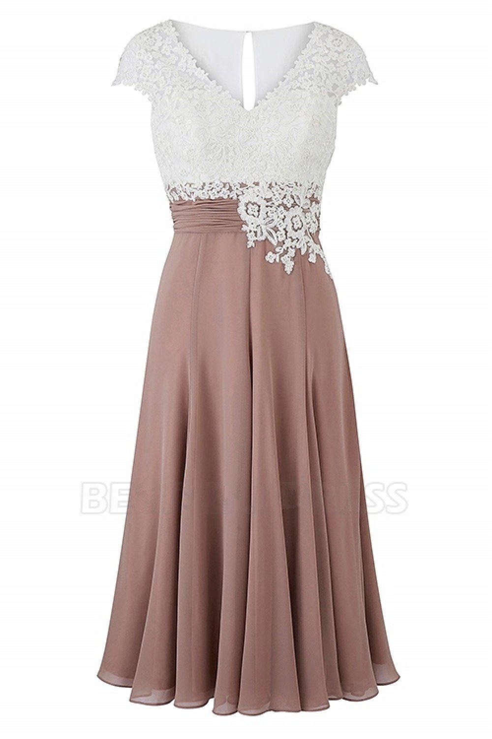 A-Line V-Neck Lace and Chiffon Tea-Length Mother of The Bride Dresses 602013