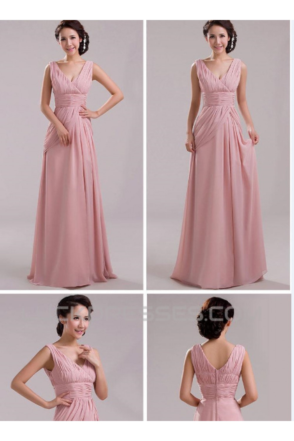 -60% A-Line V-Neck Long Pink Chiffon Prom Evening Formal Bridesmaid Dresses ED011204