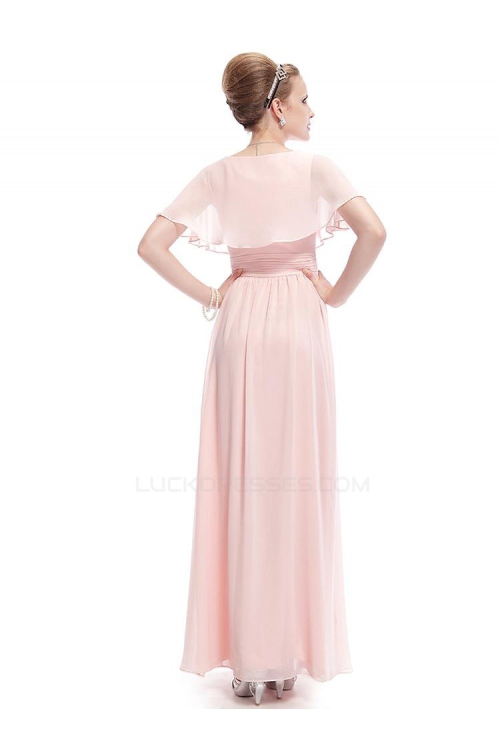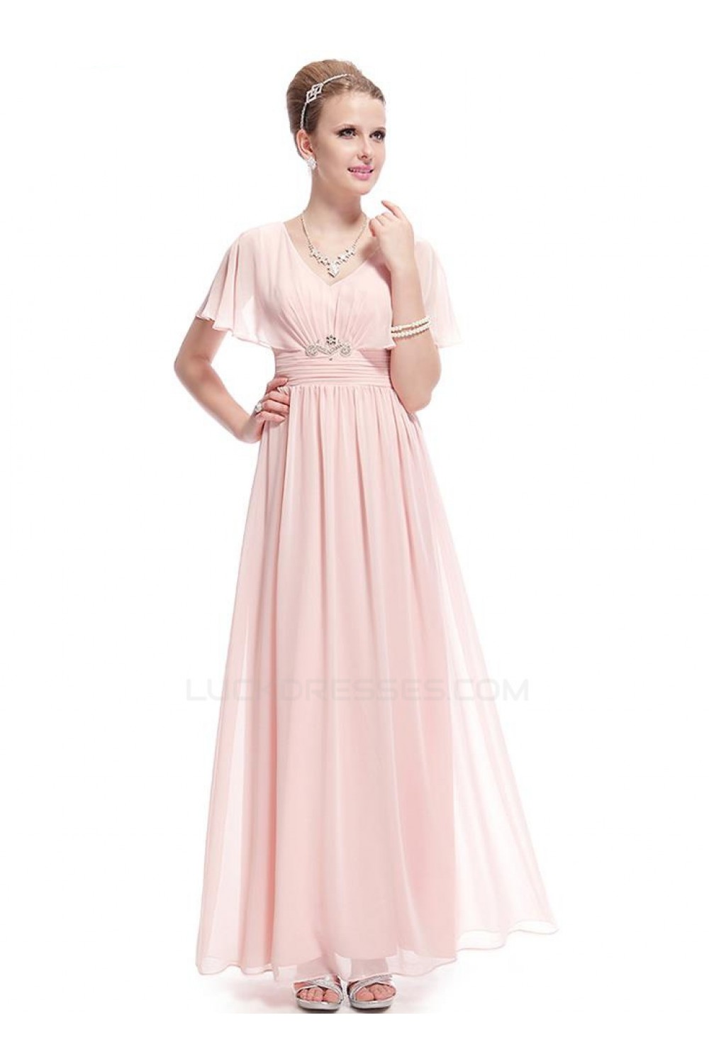 A-Line V-Neck Long Pink Chiffon Prom Evening Formal Party Dresses ED010697