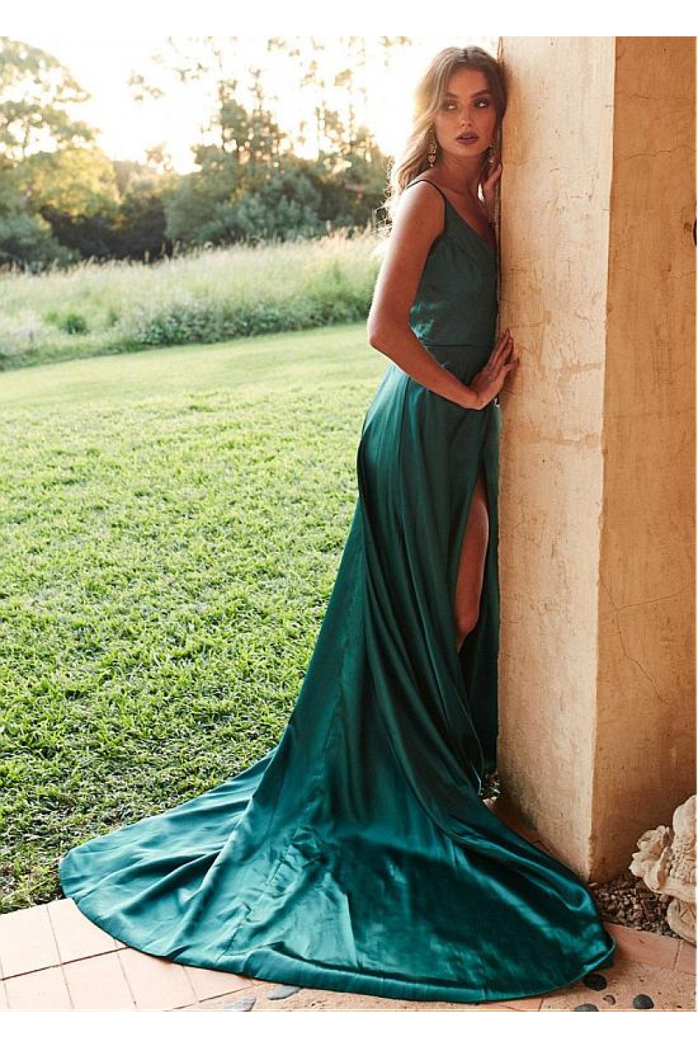 A-Line V-Neck Long Prom Dresses Formal Evening Dresses 601347