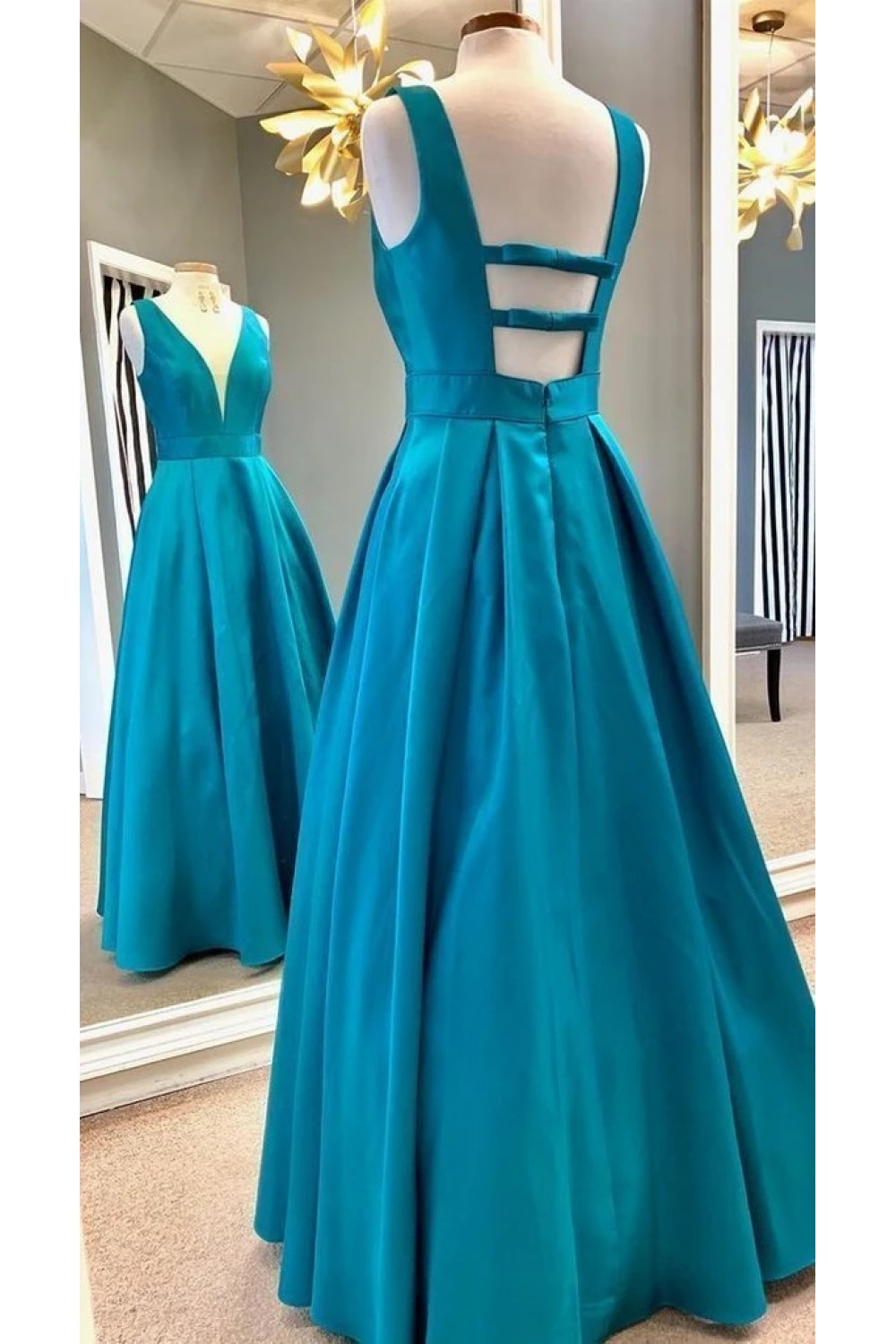 A-Line V-Neck Long Prom Dresses Formal Evening Gowns 6011569