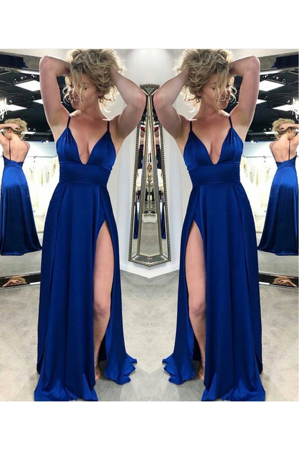A-Line V-Neck Long Prom Dresses Formal Evening Gowns 6011616
