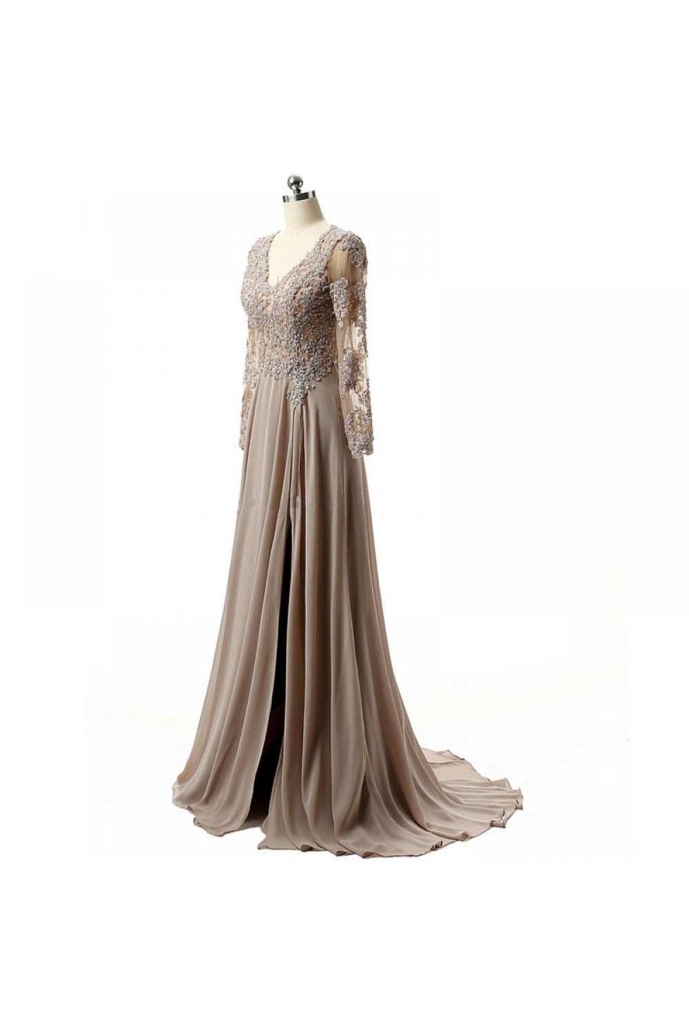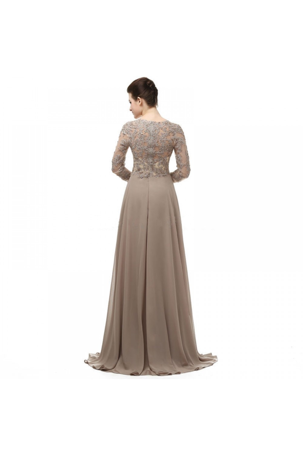 A-Line V-Neck Long Sleeves Lace Chiffon Mother of The Bride Dresses 602149