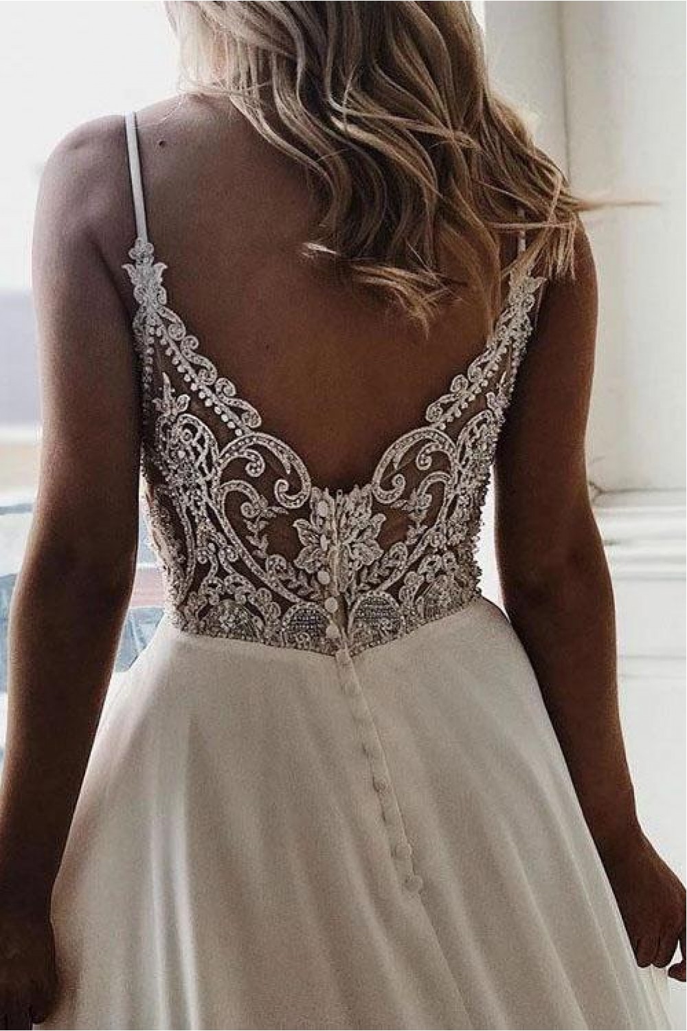 A-Line V Neck Long Wedding Dresses Bridal Gowns 903130