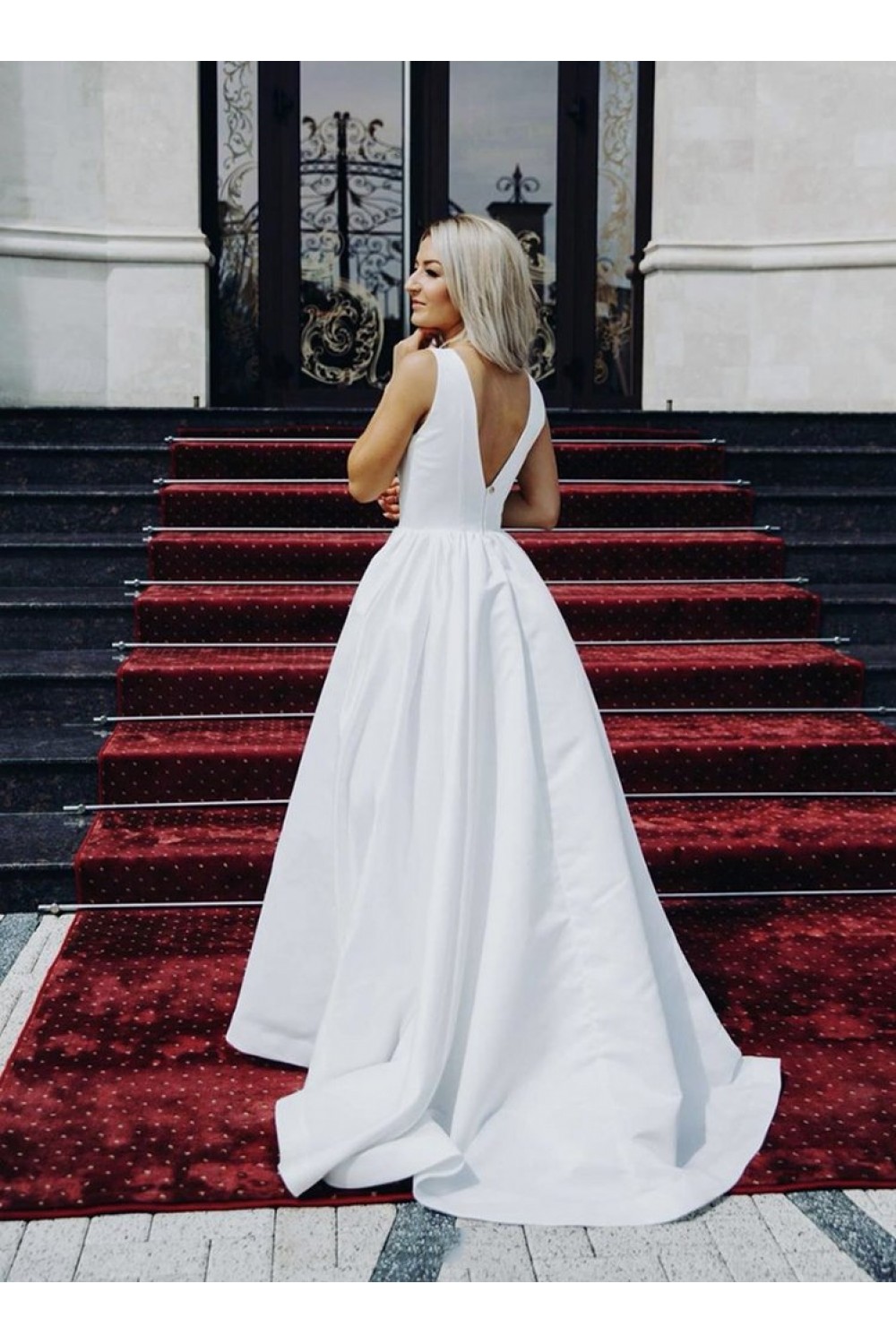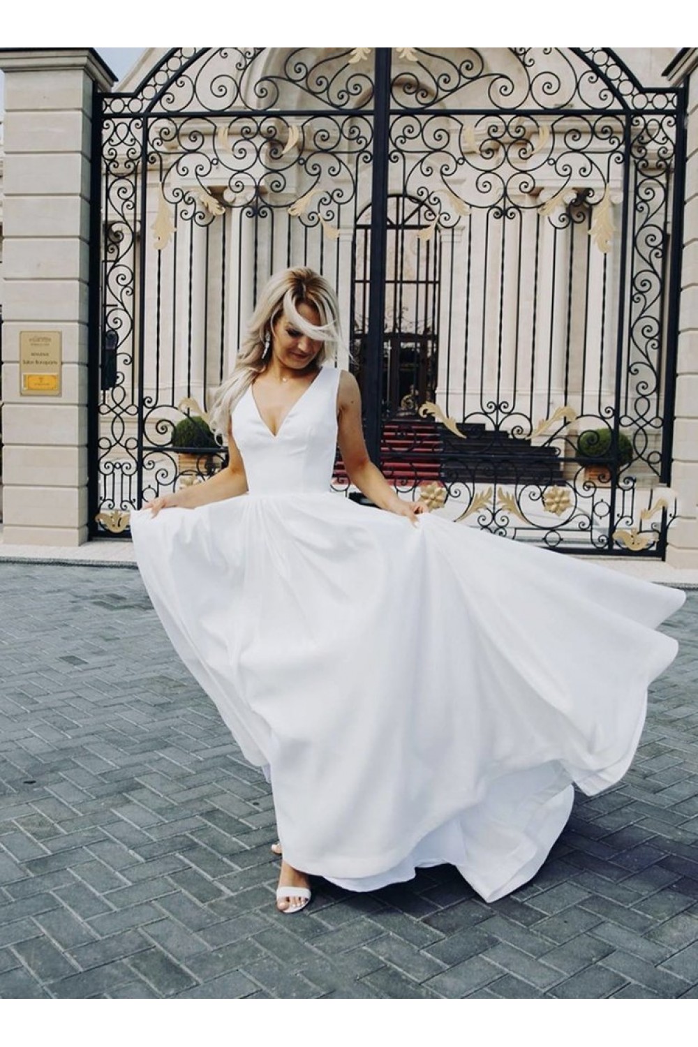 A-Line V Neck Long Wedding Dresses Bridal Gowns 903223